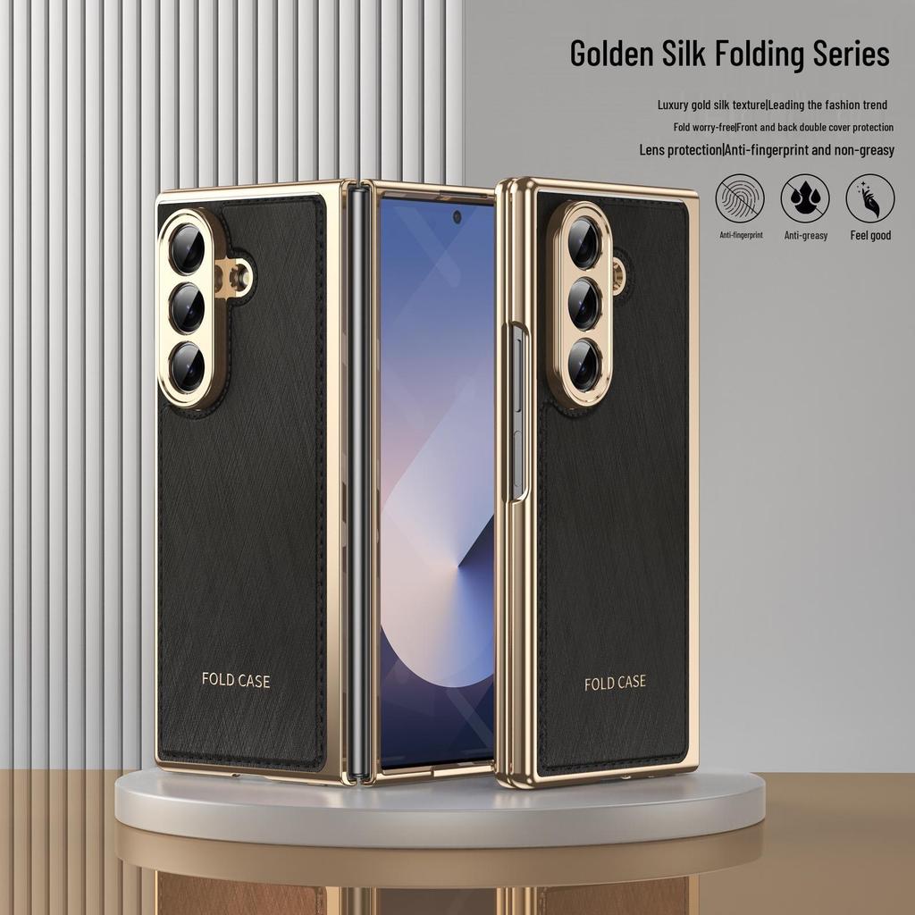 Текстура золотой нити Складной кожаный чехол с гальваническим покрытием для Samsung Z Fold7