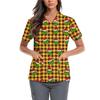 Женская милая блузка с принтом бантиков, рабочая одежда, V-образный вырез, двойной слой, карманы, базовая, с коротким рукавом, пуловер