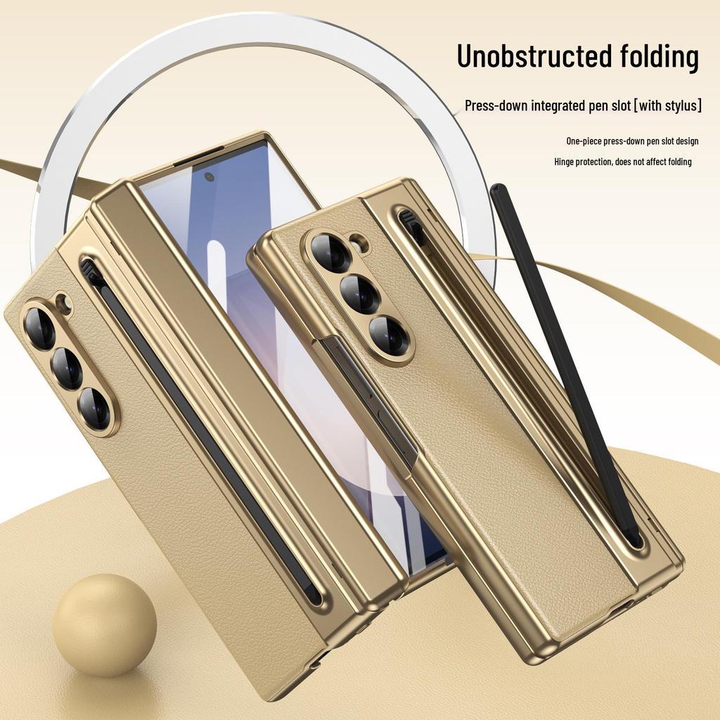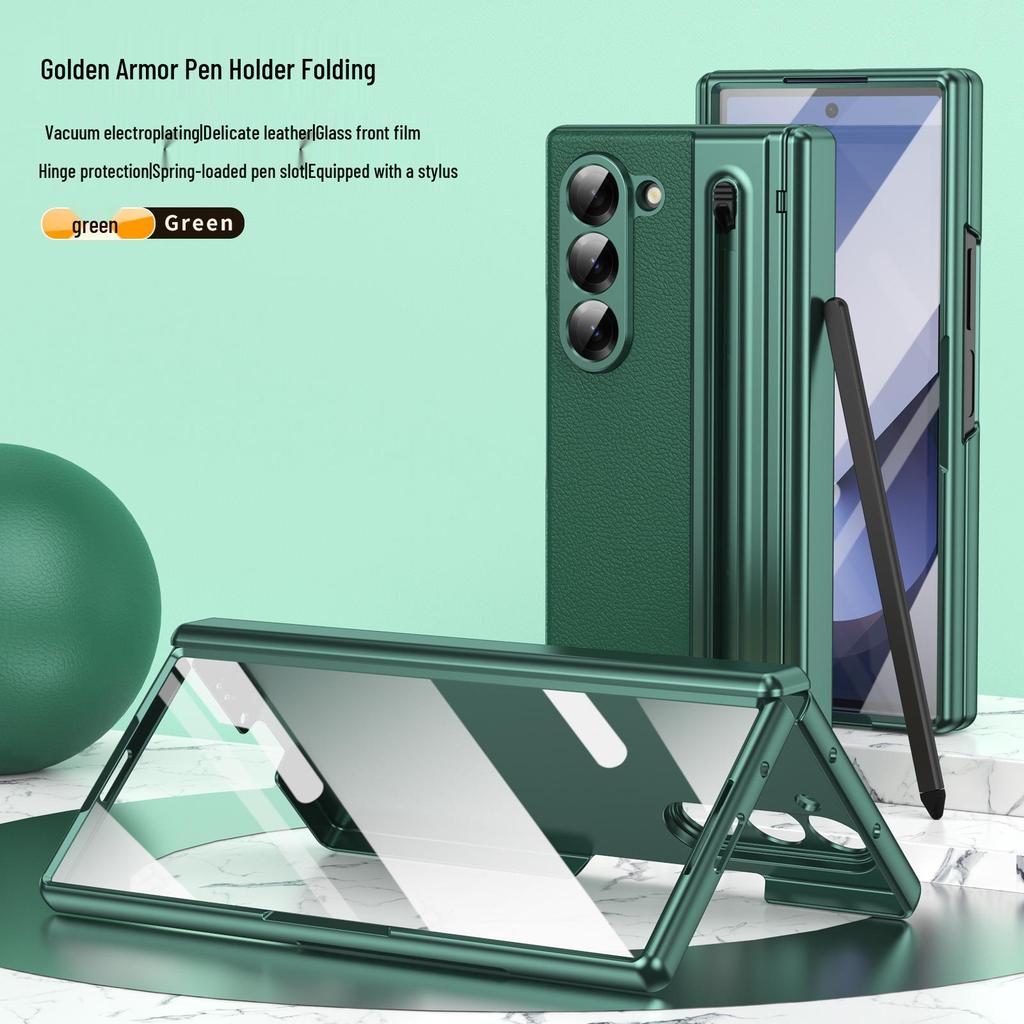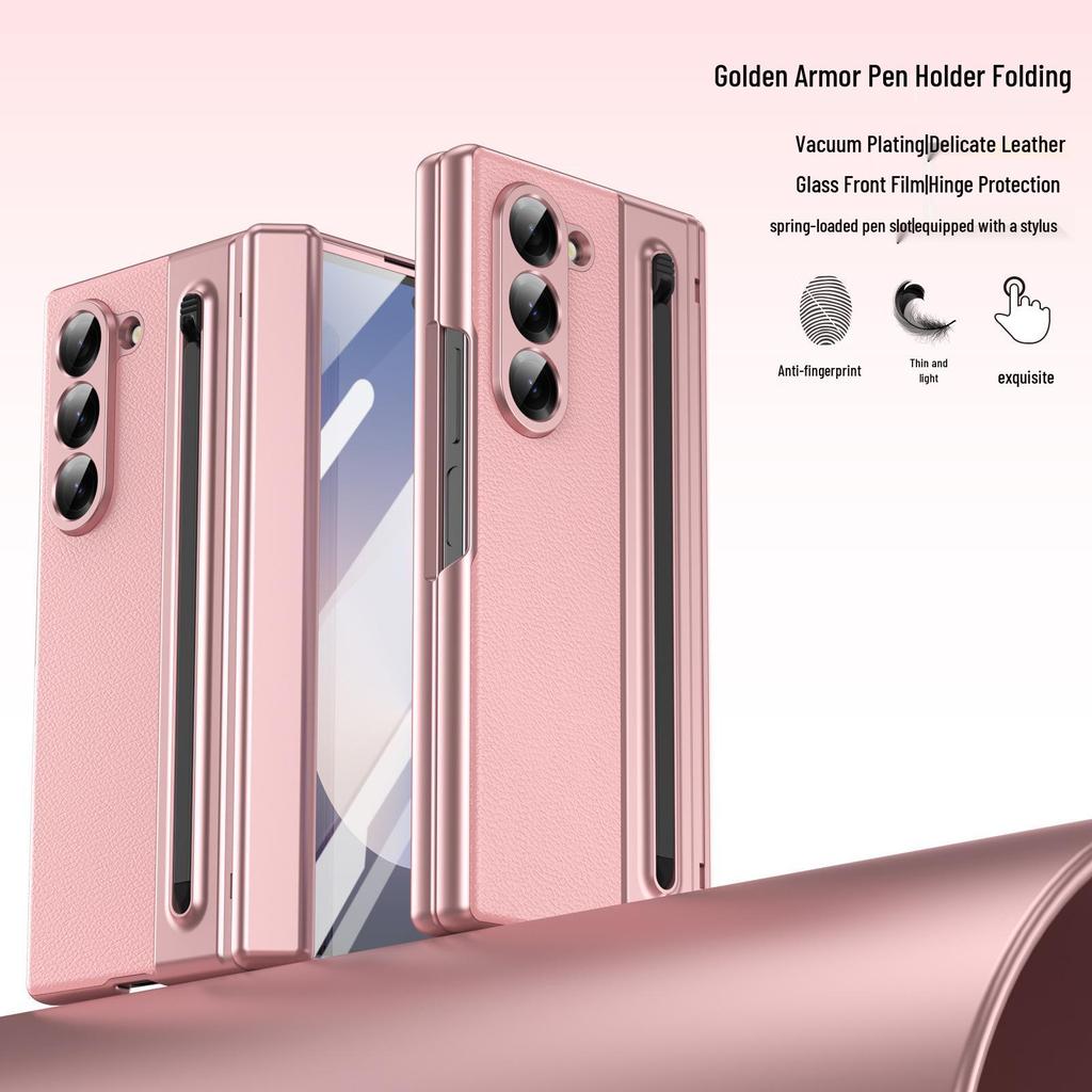 ZFOLD7: Пружинный слот для ручки и чехол для стилуса для Samsung Z Fold 6/5/4/3 с гальванической кожаной отделкой