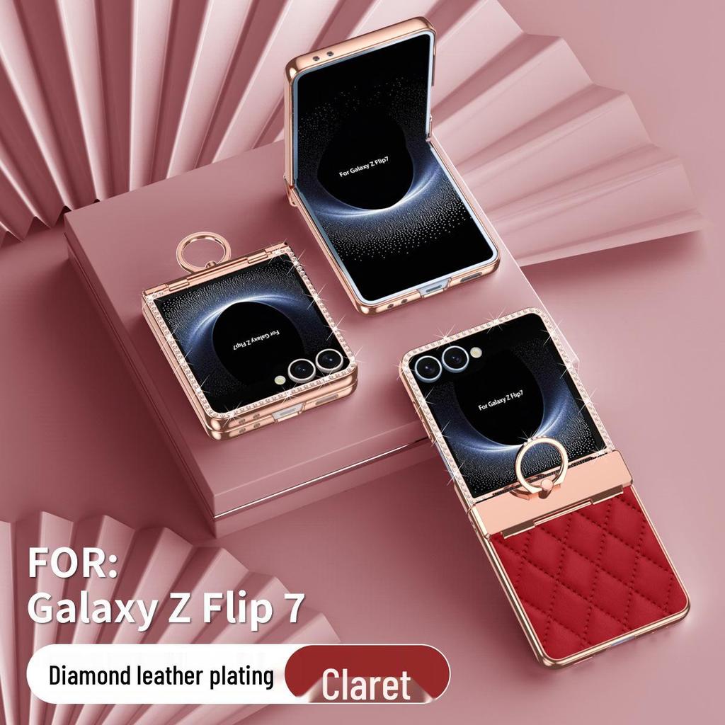 Гальванизированный защитный чехол со стразами для Samsung Z Flip 7/6/5/4/3 с кольцом-подставкой на шарнире