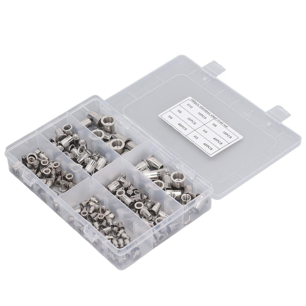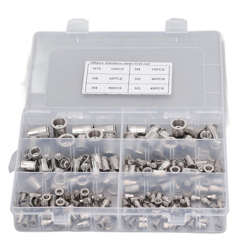 Набор гаек-заклепок 180 шт. M3 M4 M5 M6 M8 M10 Нержавеющая сталь 304 Гайки-вставки с резьбой с плоской головкой