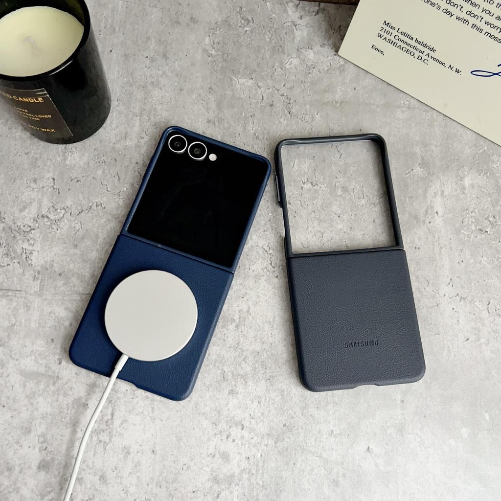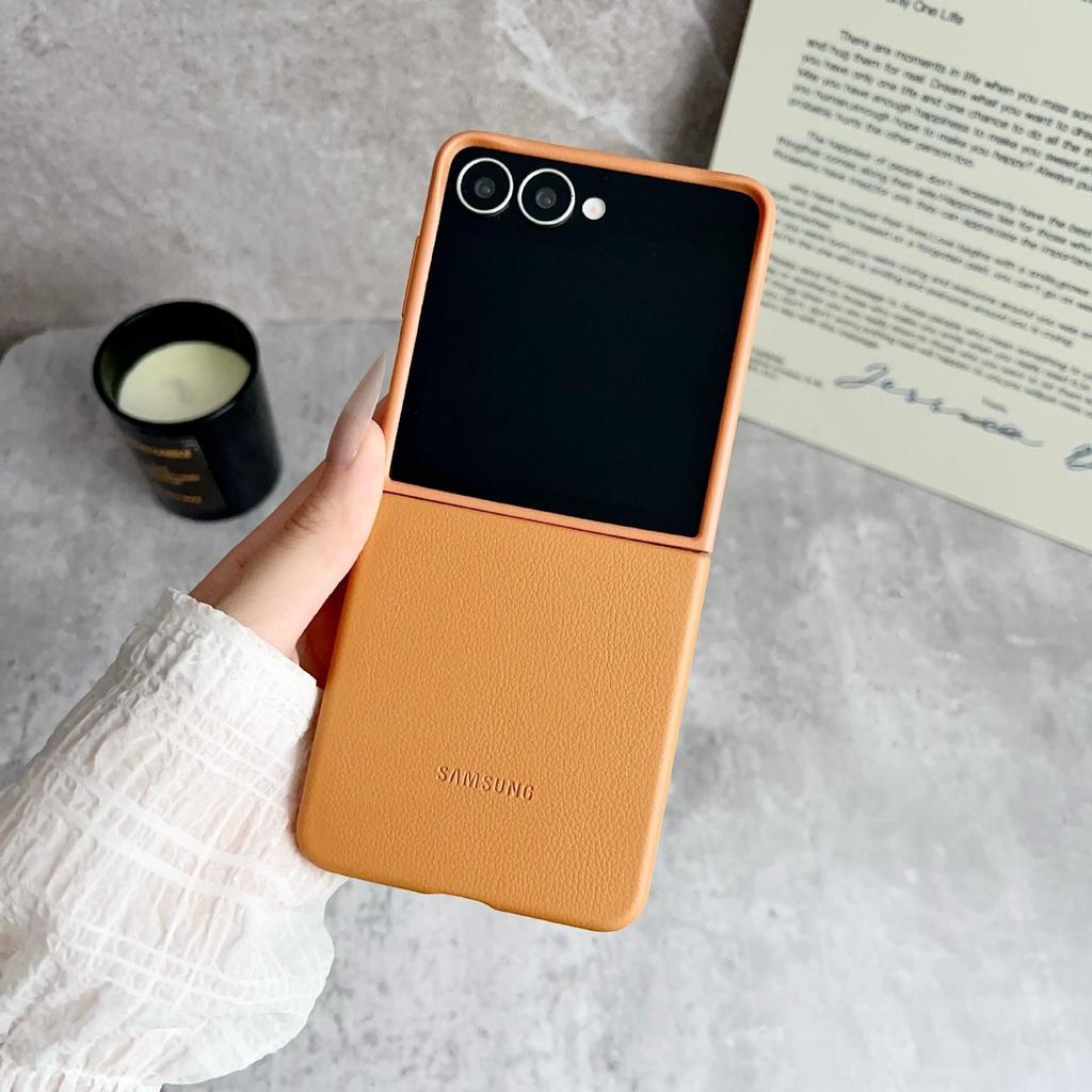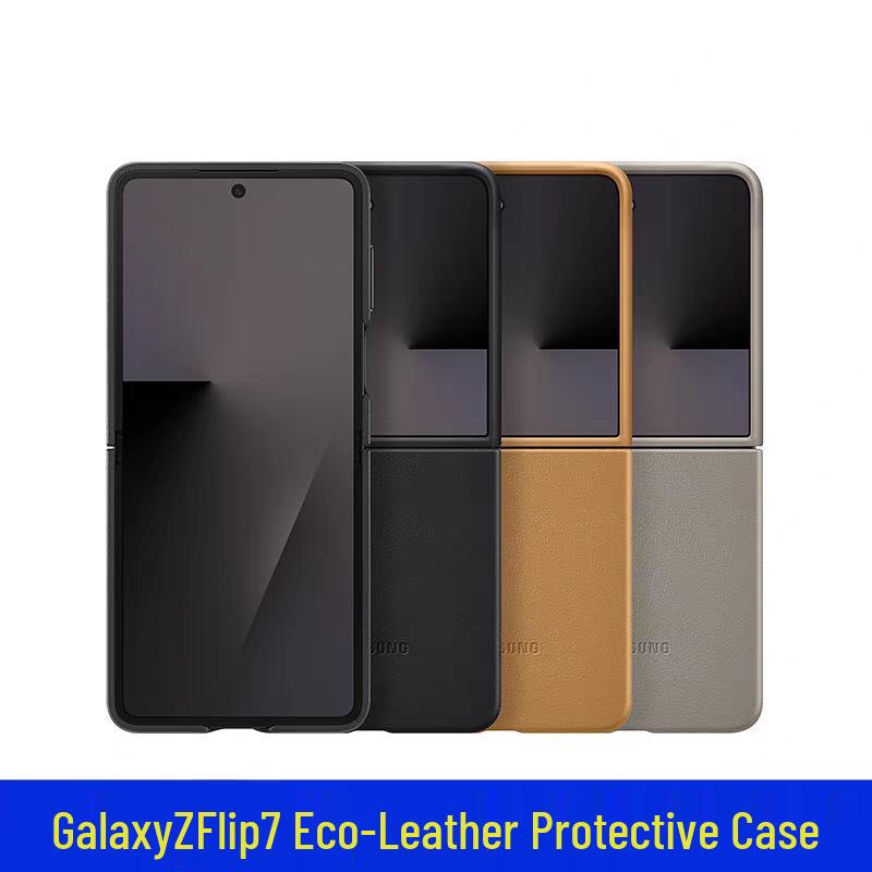 Магнитный кожаный чехол для телефона Samsung Z Flip7 - Полное покрытие, Защитная задняя крышка однотонного цвета.