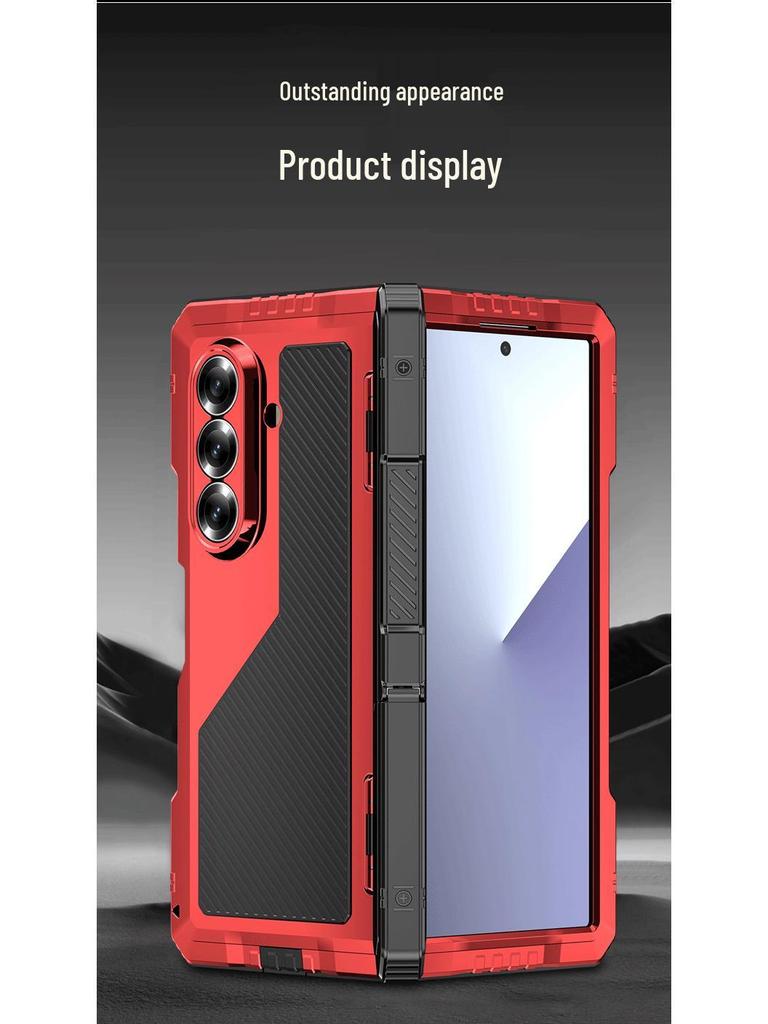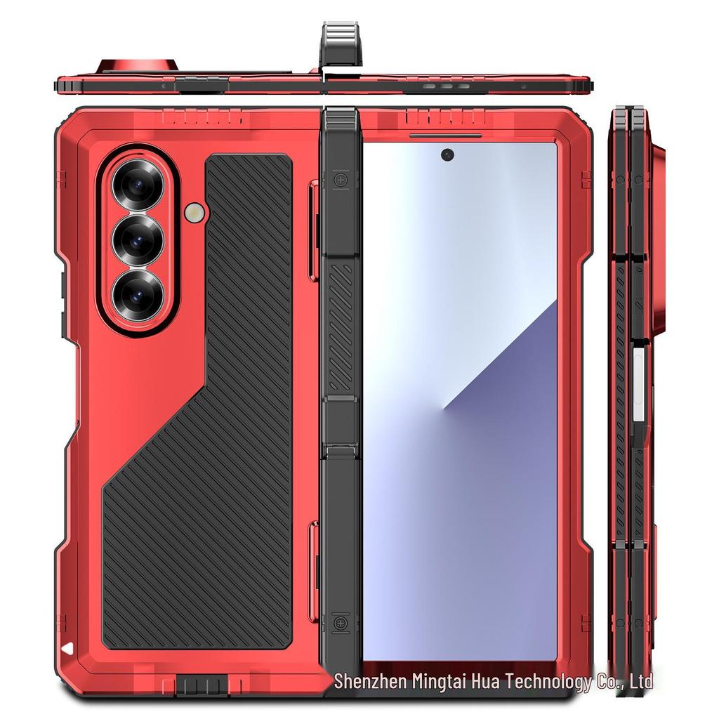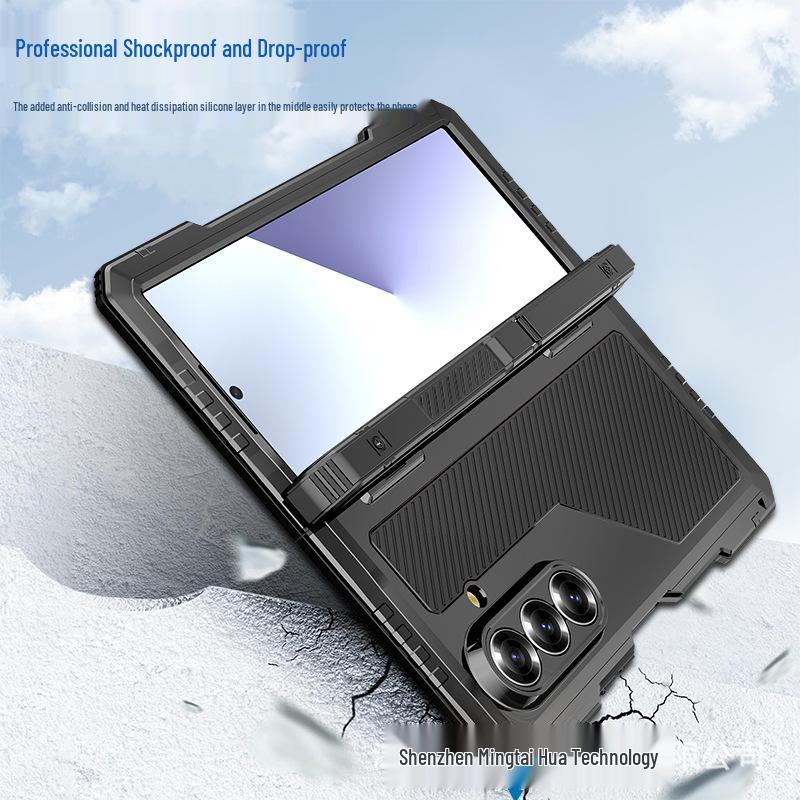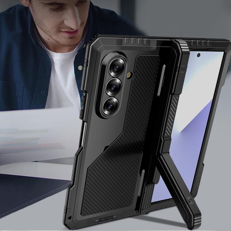 Металлический трехкомпонентный чехол для телефона Z-Fold7 с подставкой, шарниром и слотом для стилуса - Ударопрочная жесткая накладка для Fold7