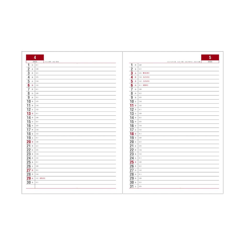 This popular layout features a weekly schedule on the left half and ruled memo space on the right half, allowing you to manage your weekly plans and notes on a double-page spread.