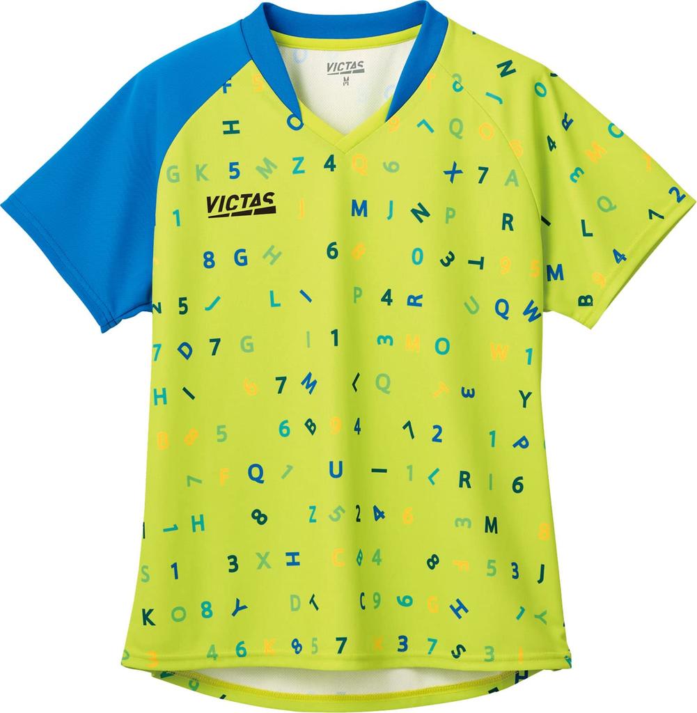 VICTAS Женская игровая футболка для настольного тенниса, Поп-шрифт, J.T.T.A. (Японская ассоциация женского настольного тенниса) Одобрено, Лаймовый (4200), Размер 2XS, 612303