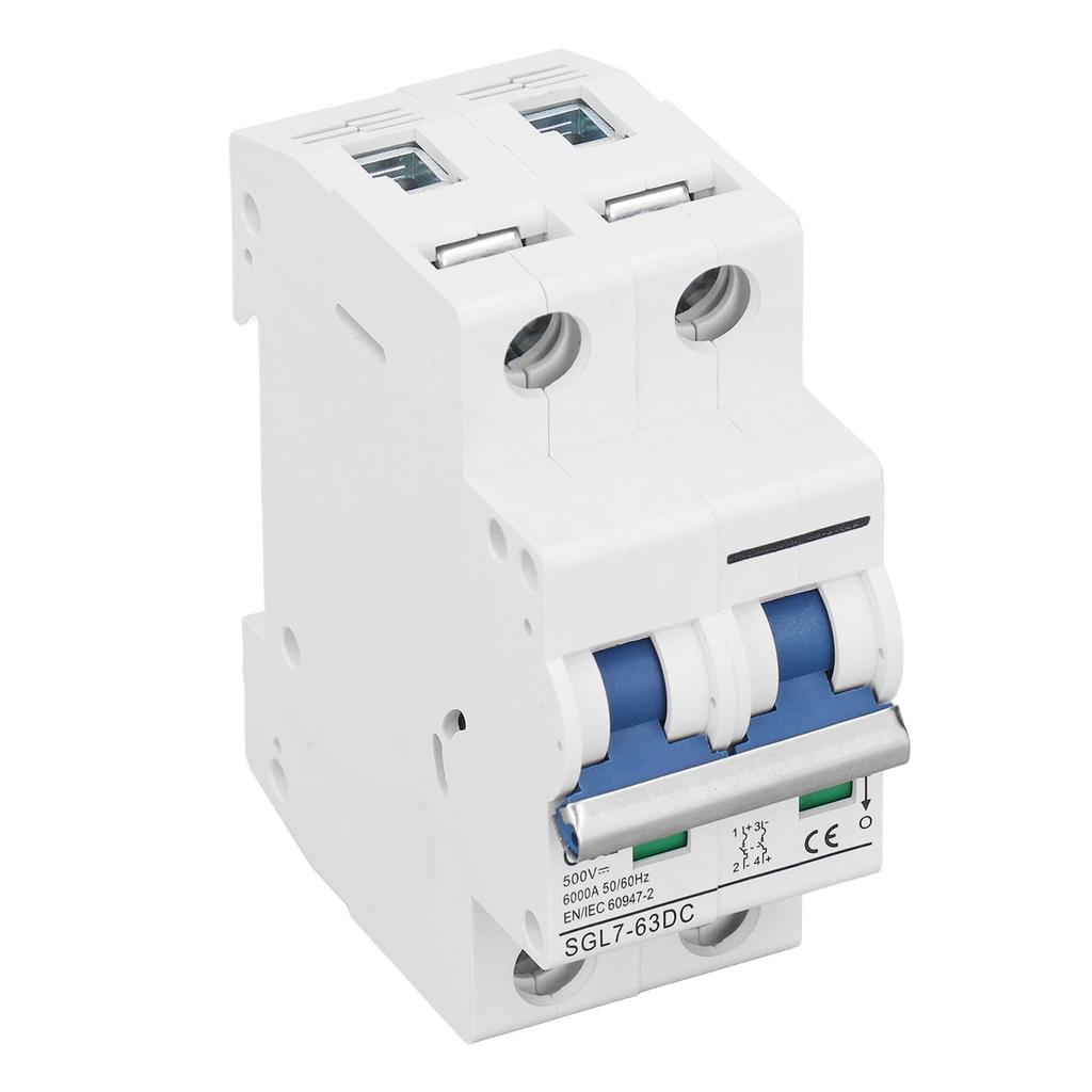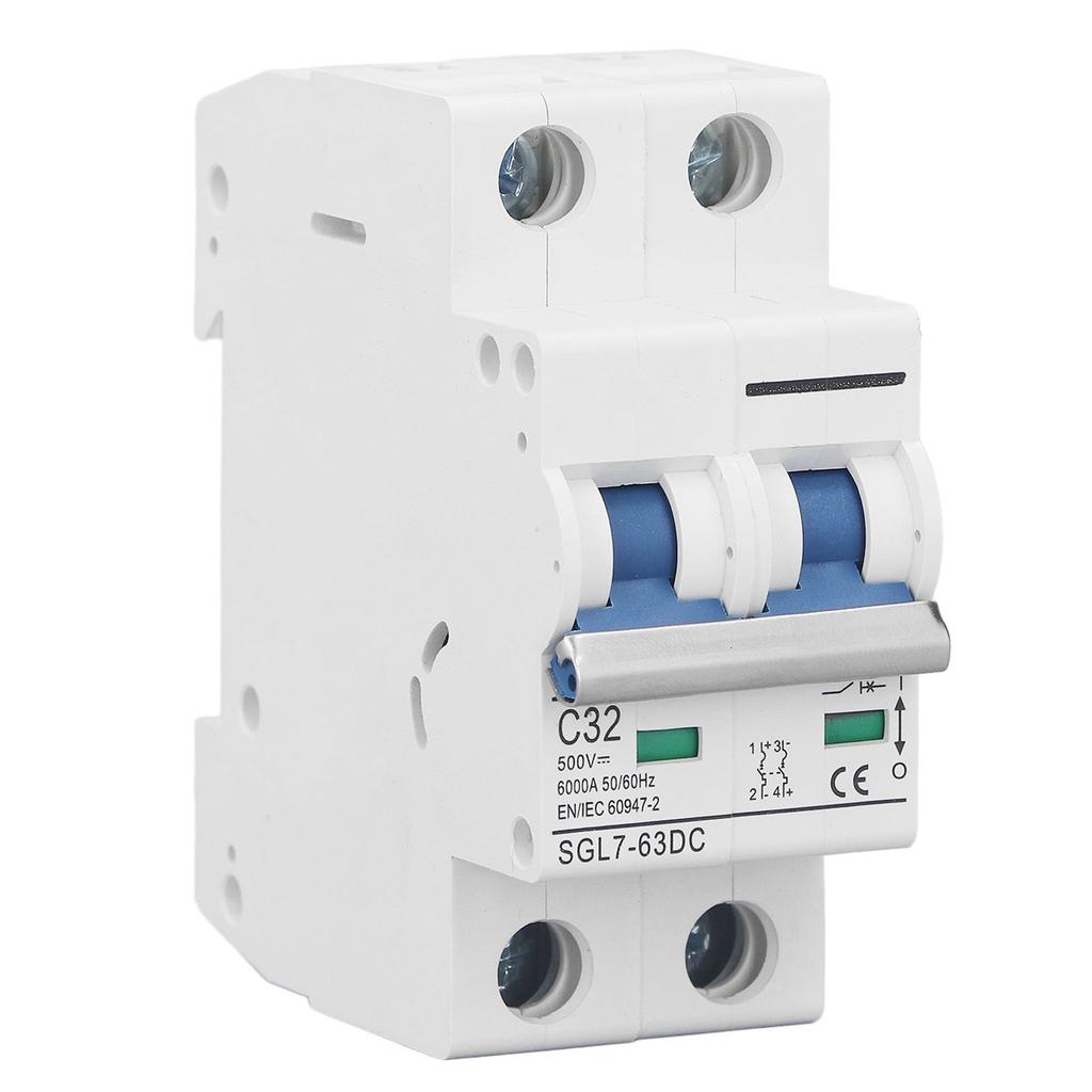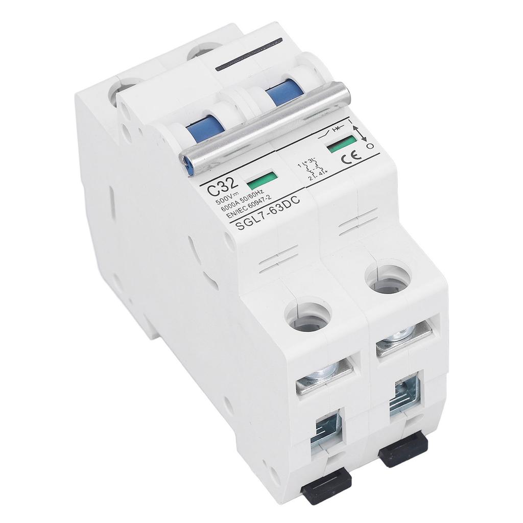 Миниатюрный автоматический выключатель постоянного тока 2 полюса 500В 32А Изолятор Крепление на DIN-рейку Выключатель для солнечной фотоэлектрической системы