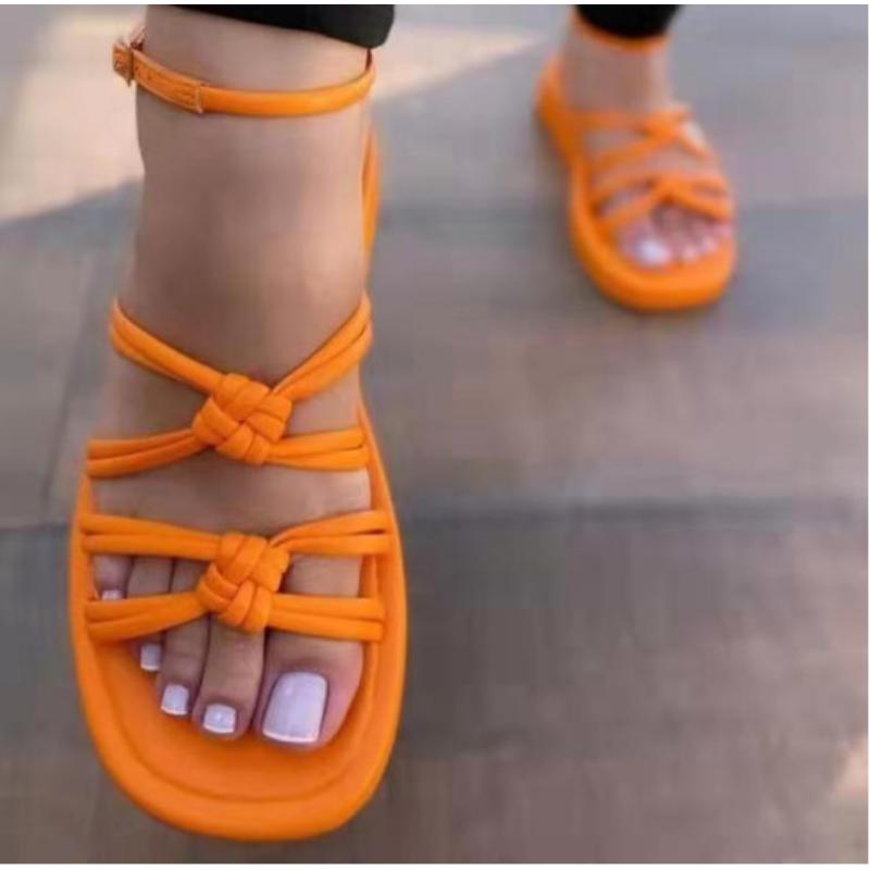 Женские сандалии на толстой подошве, новинка 2023 года, однотонные однотонные пляжные сандалии с круглым носком и пуговицами, большие размеры, женские пляжные сандалии