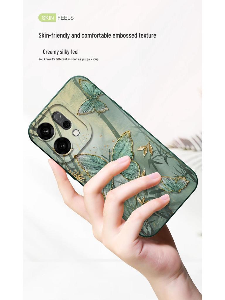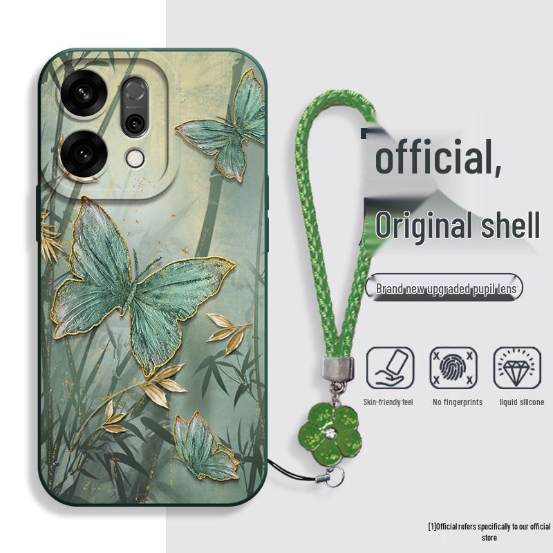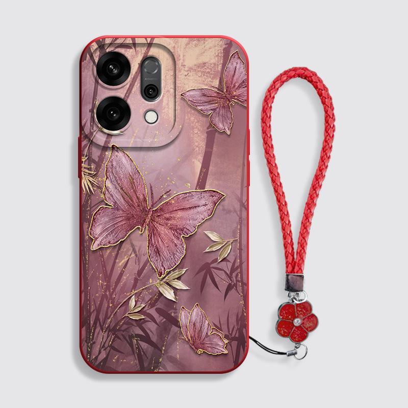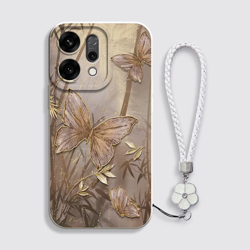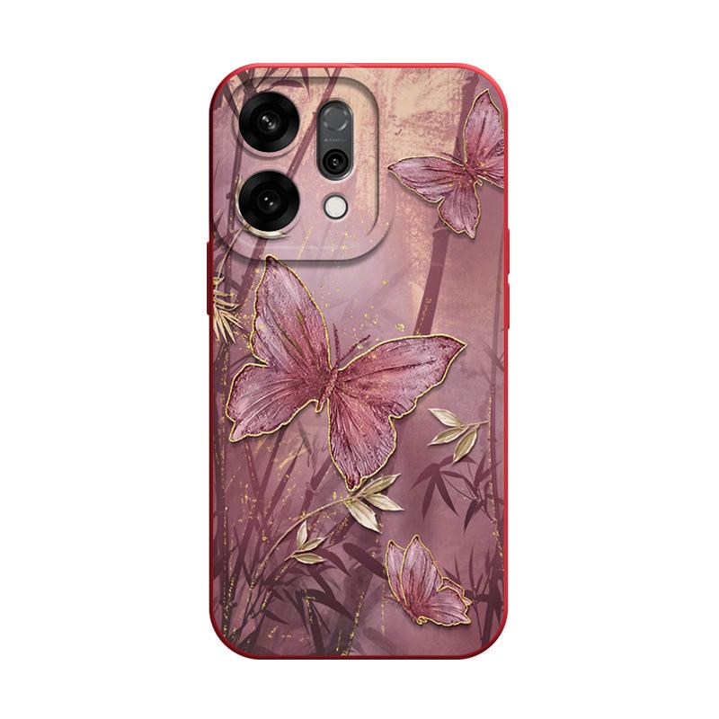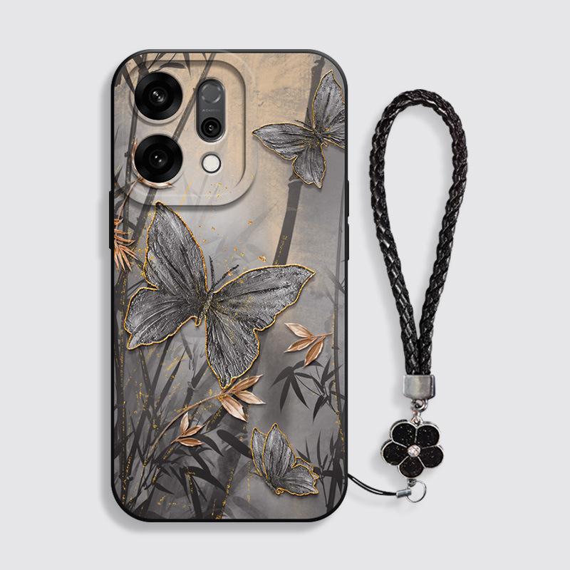 Бамбуковый чехол для телефона с чернильным рисунком бабочки для OPPO Reno14/14Pro/13/12 Серия Fashion