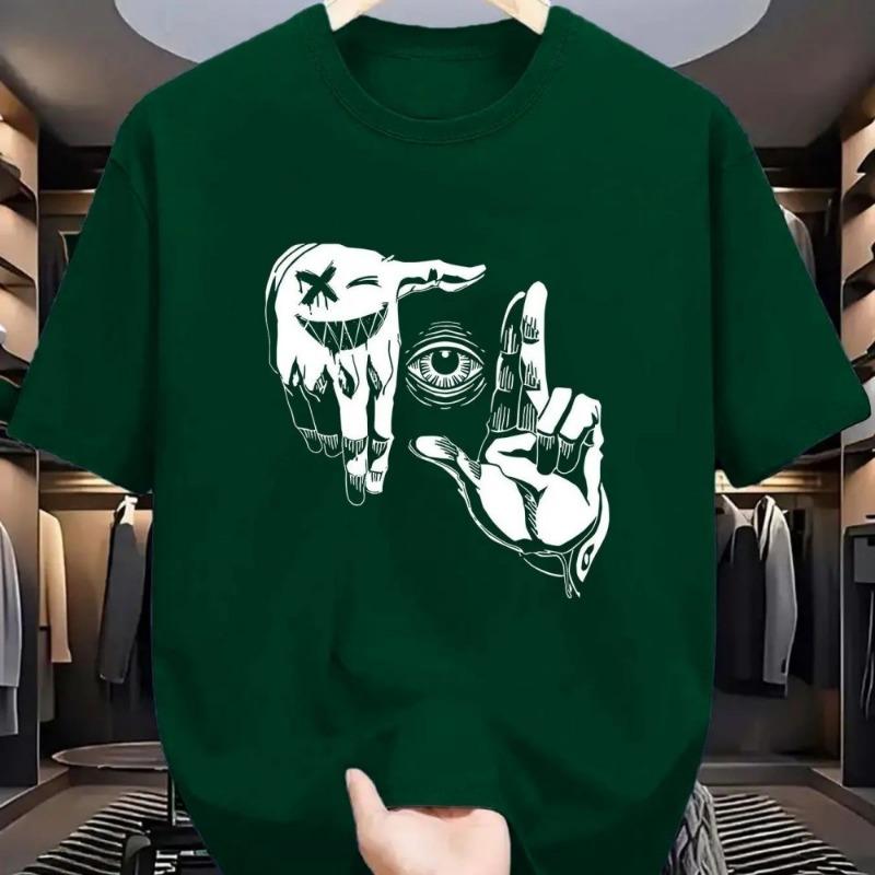 Летняя мужская повседневная дышащая футболка с круглым вырезом и принтом с жестом глаза, персонализированный узор, верх для улицы