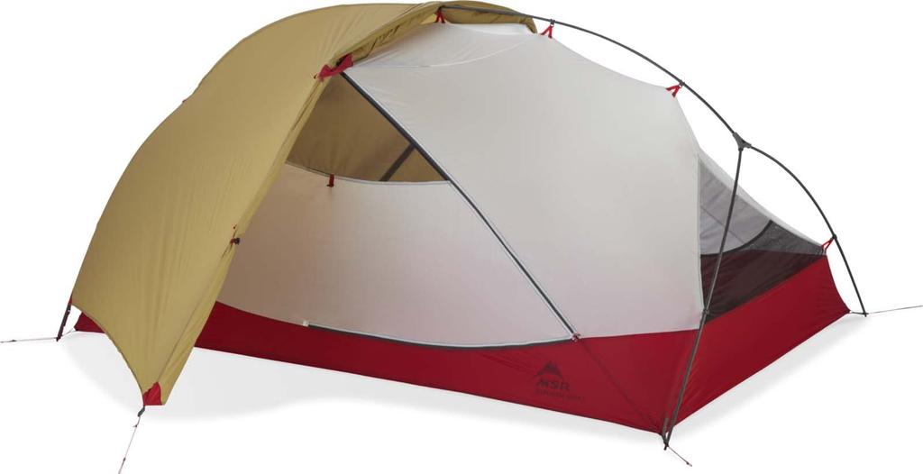 The poles intersect at the top, allowing the sidewalls to stand upright and providing a comfortable living space. This allows for quick and easy setup. Combined with a large entrance, vestibule, and ample interior space, the new Hubba series makes backcountry living easy.