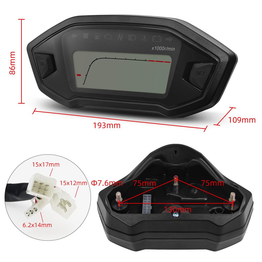 Универсальный мотоциклетный светодиодный цифровой спидометр 10000 об/мин 7 цветов подсветки цифровой одометр тахометр для 2,4 цилиндров