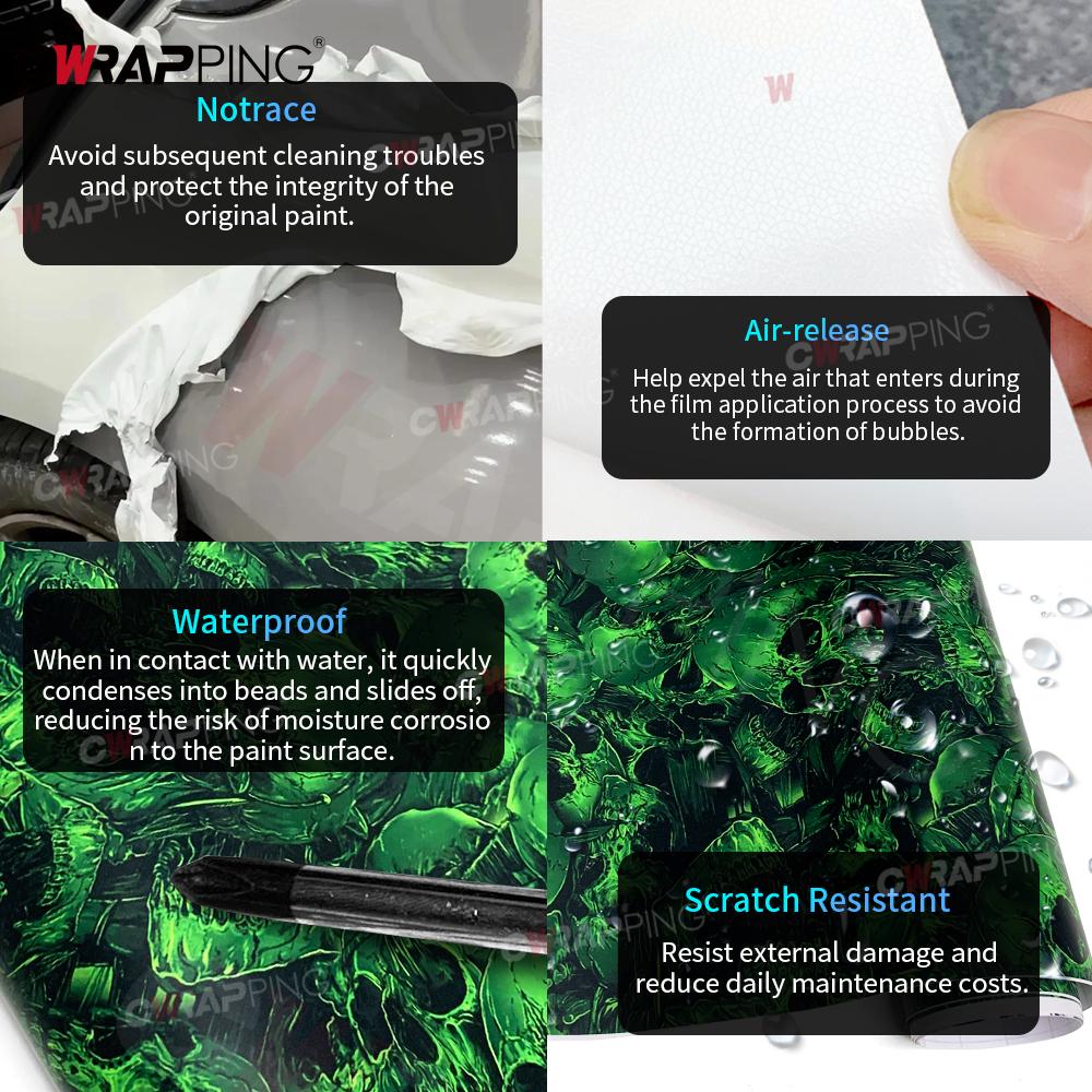 Водонепроницаемая пленка, оберточная фольга, покрытие, фольга с воздушными каналами, наклейка с черепом для автомобильной обертки, винил, самоклеящиеся, на заказ, экстерьер