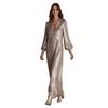 Элегантный дизайн с V-образным вырезом: Благодаря лестной V-образной горловине это платье подчеркивает линию шеи и ключицы, добавляя нотку изысканности.. Свободная юбка дополняет силуэт, обеспечивая грациозное движение и без усилий подчеркивая ваше природное очарование.