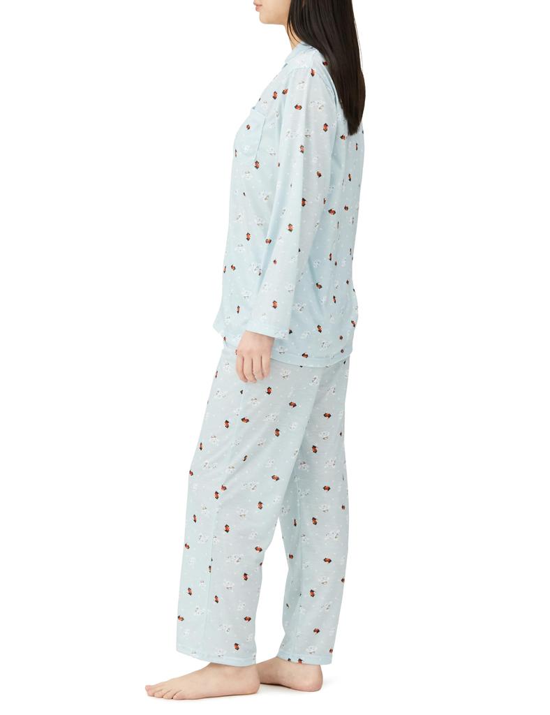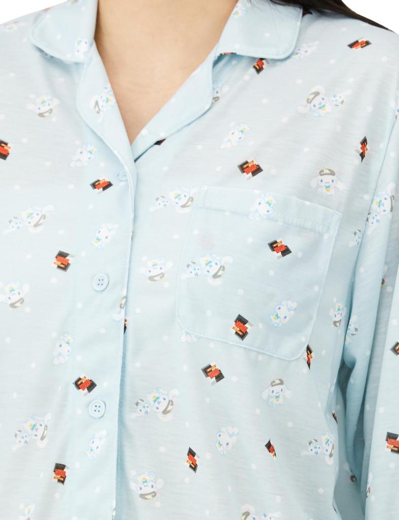 Sanrio Women's Blue Tyrol Chocolate Pajama Set, Long Sleeve Jersey Shirt Pajamas, Hangyodon and Cinnamoroll Designs