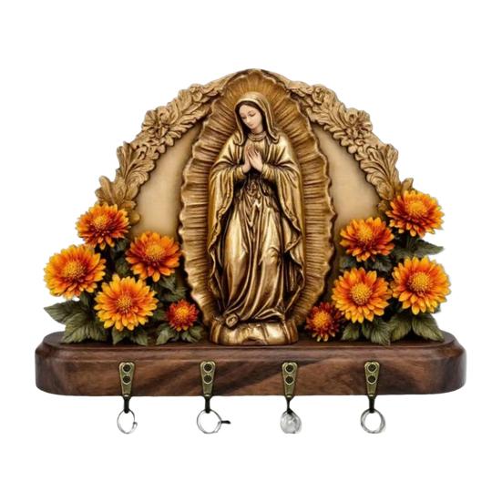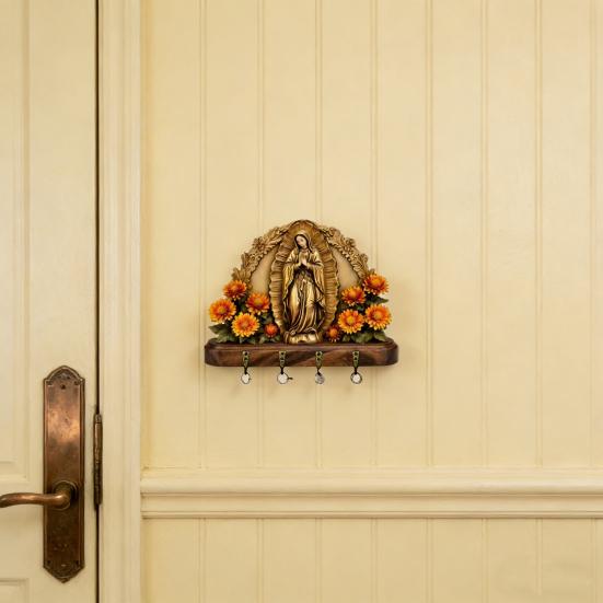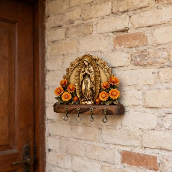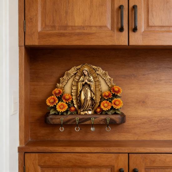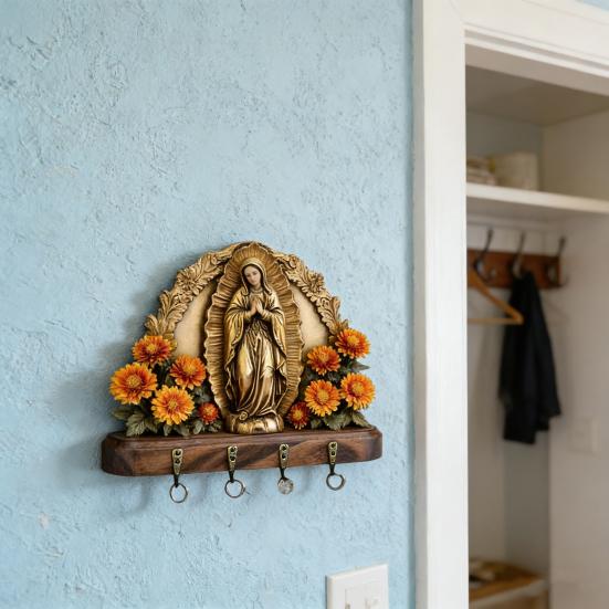 Двумерная плоская настенная ключница с изображением Девы Марии в стиле кантри, религиозное настенное панно с 4 металлическими крючками для прихожей, коридора, деревенский христианский подарок для семьи и друзей.