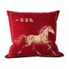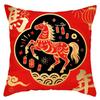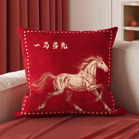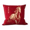 Праздничный мотив года Лошади: Эта наволочка с ярким красным фоном, украшенным замысловатыми узорами с лошадьми, символизирующими удачу и силу, идеально подходит для новогодних празднований или торжеств в год Лошади.. Это добавляет значимый и радостный штрих в ваш домашний декор во время особых случаев.