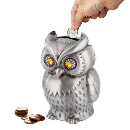 Уникальный дизайн в форме совы: Эта копилка имеет изысканную форму совы, сочетающую функциональность с очаровательной эстетикой.. Его детальная проработка делает его идеальным декоративным элементом для любого стола или полки, добавляя нотку причудливости и элегантности вашему дому или офисному пространству.