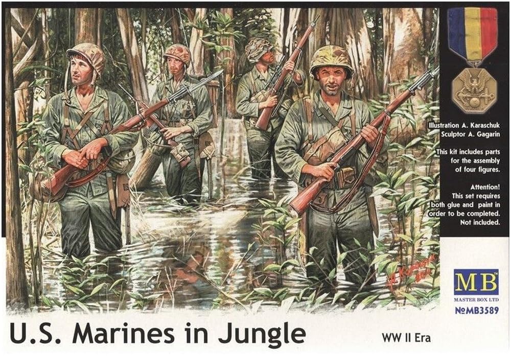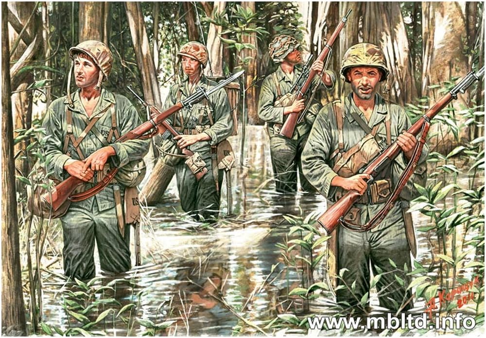 Master Box 1/35 Scale US Marine Corps (4 Figures) Pacific War Jungle Warfare Plastic Model Kit MB35089