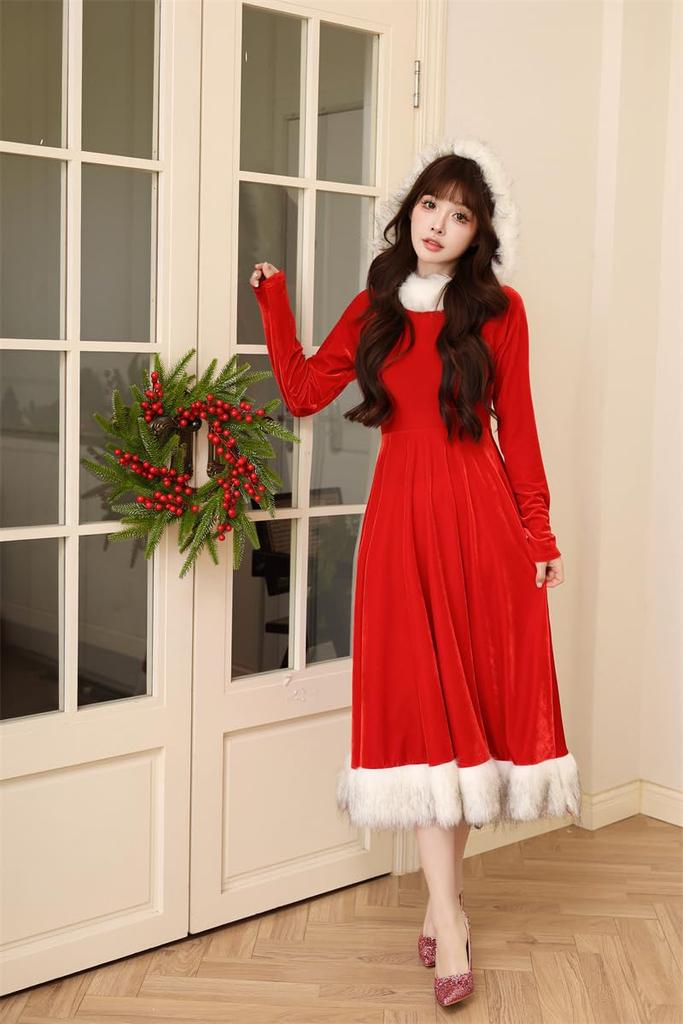 Shangki Santa Dress, Santa Claus Long Sleeve Dress with Hood, Red, Christmas Costume for Women, Party Wear, Cute Long Skirt (Size L, Red)