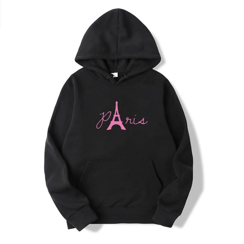 Unisex Pink Paris Printed Hoodies Outdoor Sport Pullover Top for Spring Autumn Loose Men's Hooded Sweatshirt Hip Hop Sweaters