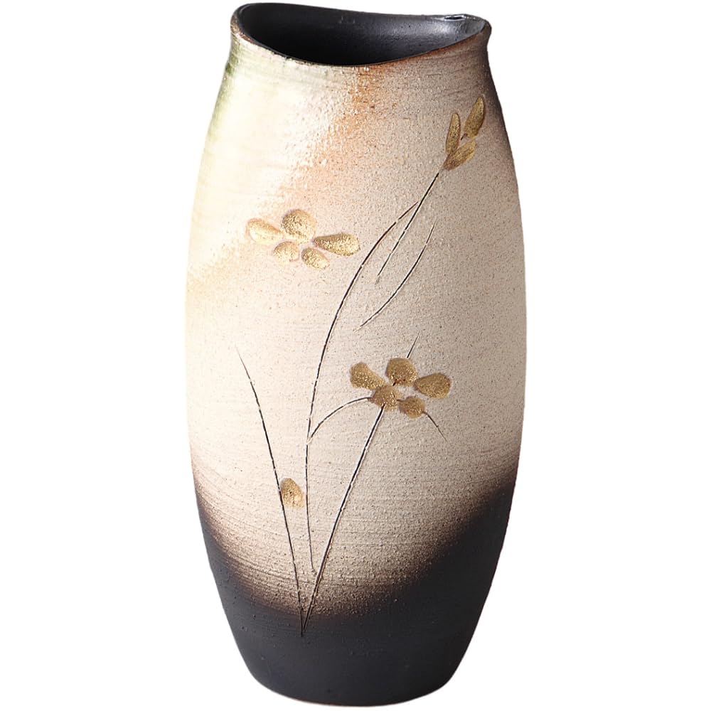 Ale-net Flower Vase, W15 x D15 x H30cm, Gold-painted Flower Carving, Ceramic, Shigaraki Ware, Made in Japan — купить товар онлайн с бесплатной доставкой по всему миру!