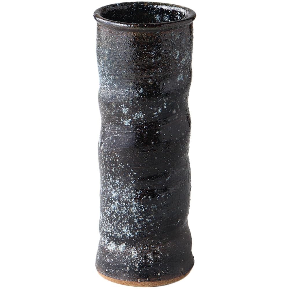 Ваза для цветов Ale-net, Ш8 х Г8 х В22см, Черная керамика, закаленная в печи, Керамика Сигараки, Сделано в Японии