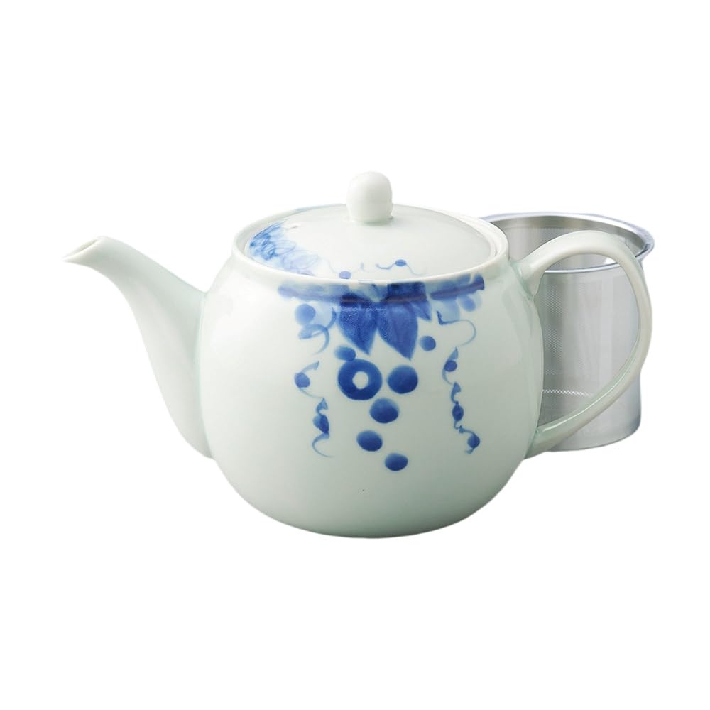 Ale-net Teapot (Stainless Steel with Strainer), 12x12cm, 725cc, Arita Ware, Antique Grape Design, Porcelain, Made in Japan, Stylish