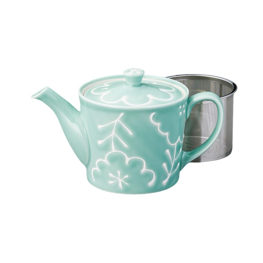 Ale-net Arita-yaki Maria SS Teapot (Stainless Steel with Strainer), 10 x 10.5 cm, 400cc, Green, Porcelain, Made in Japan, Stylish