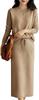 Женское трикотажное миди-платье Allegra K с V-образным вырезом и длинным рукавом, платье-свитер, длиной до колена, однотонное, приталенного силуэта, бежевое, размер M