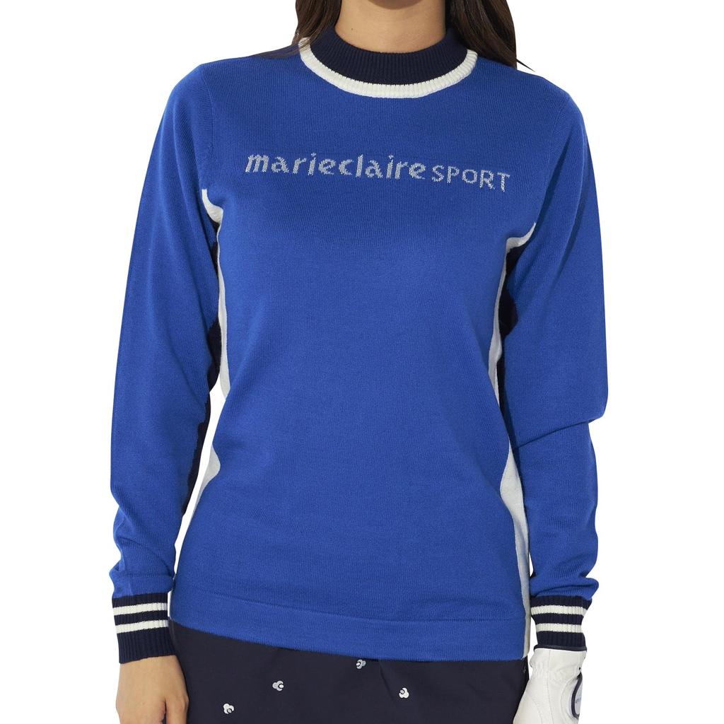 Marie Claire Women's Color Block Wool Blend Mock Neck Knit 734720, Blue