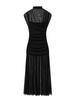 Черное сетчатое макси-платье для женщин, сексуальное платье без рукавов, прозрачное плиссированное платье для вечеринки, женская мода, облегающее длинное платье 2025