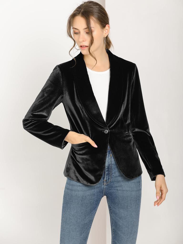 Allegra K Бархатное пальто-блейзер с шалевым воротником и застежкой на пуговицы, однотонное, для офиса, женское, черное, размер XS