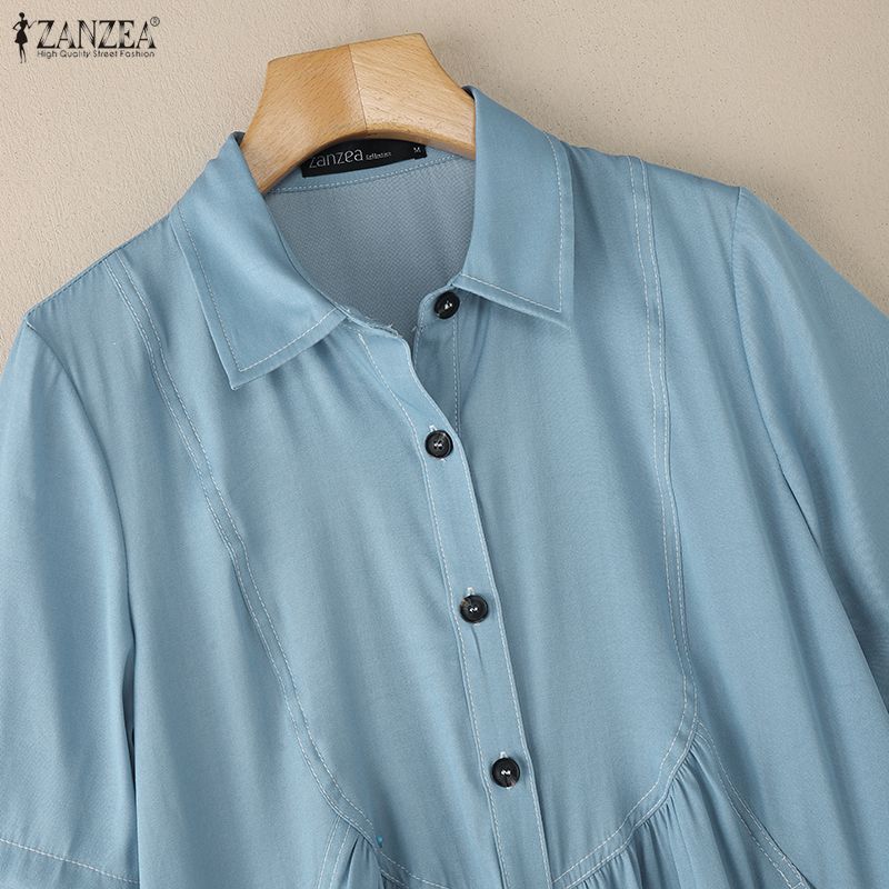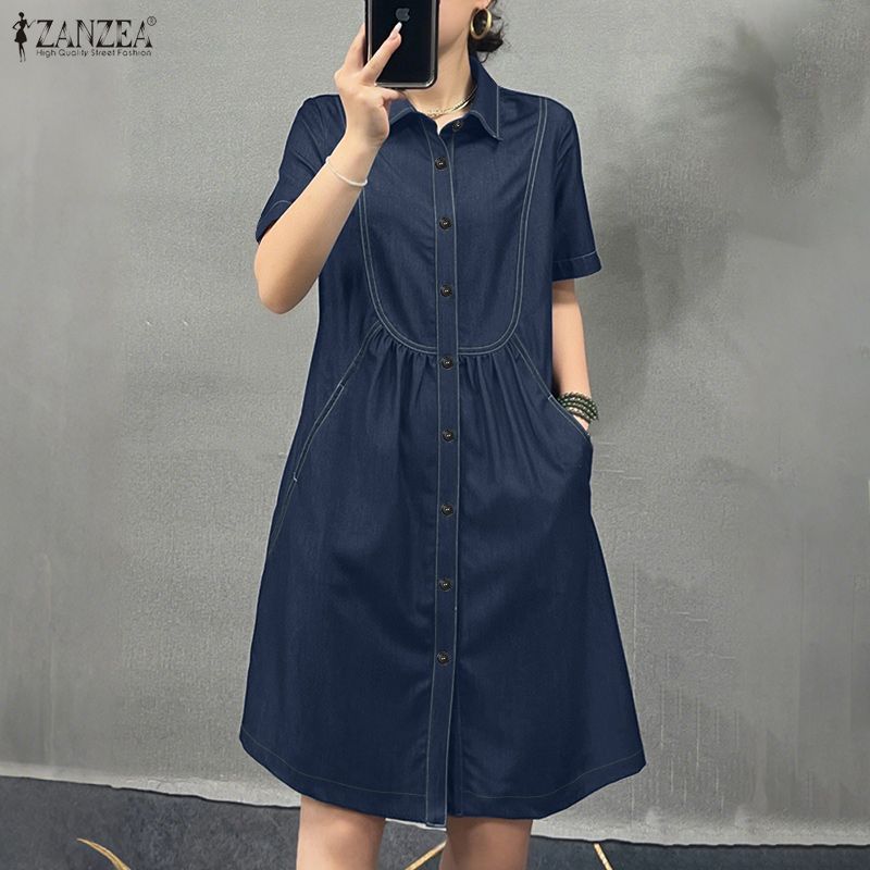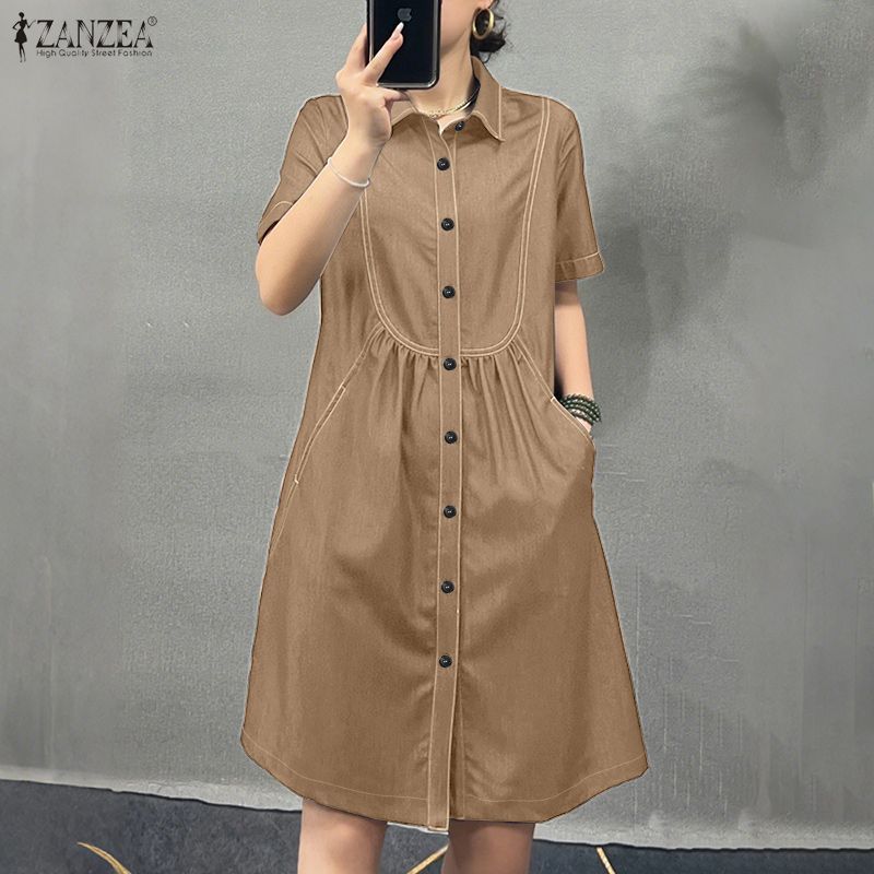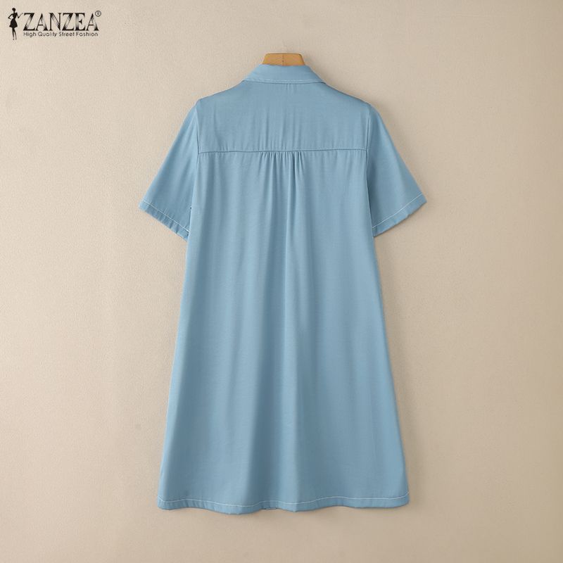 ZANZEA Женское повседневное летнее платье с отложным воротником и коротким рукавом