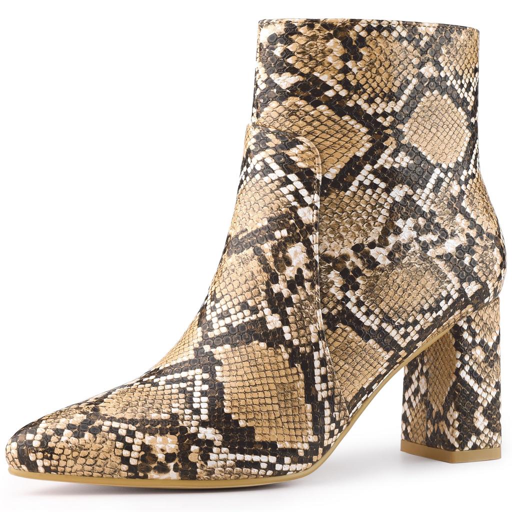 Женские коричневые ботильоны Allegra K с принтом под змею и пайетками, на массивном каблуке и с острым носком, размер 26,0 см — купить товар онлайн с бесплатной доставкой по всему миру!