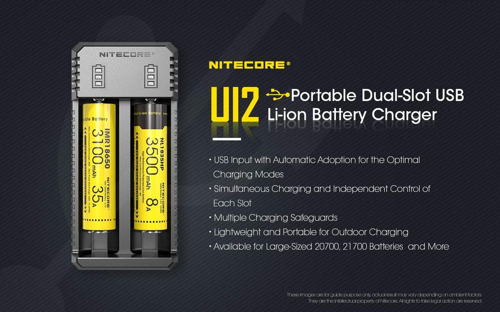 NITECORE UI2 USB Portable Charger for IMR/Lithium-ion Rechargeable Batteries, 2 Slots