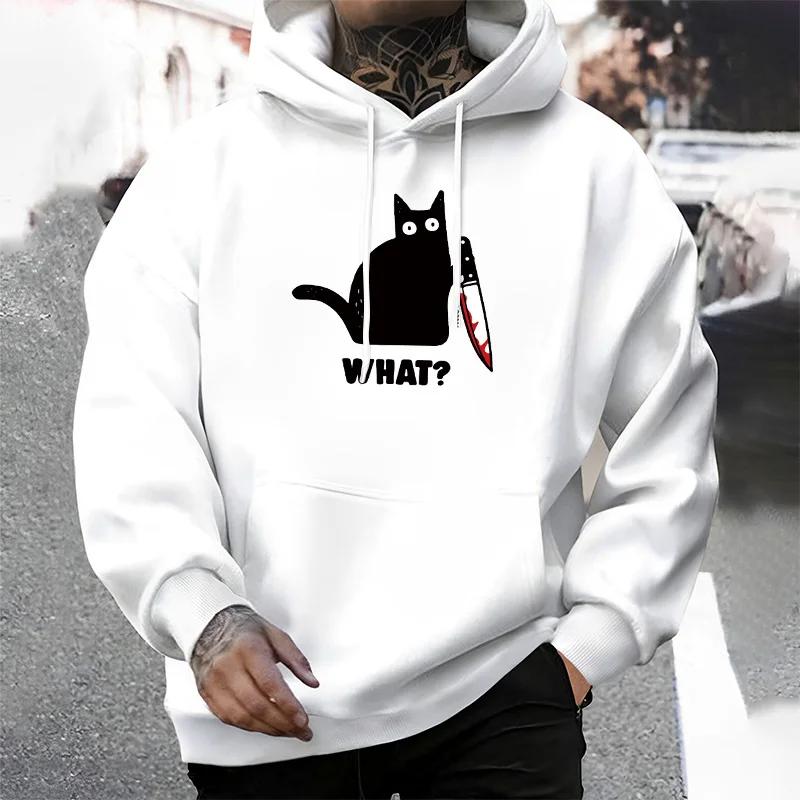 Fashion Mens Clothing Cat Printing Casual Sweatshirts Outdoors Fitness Sports Jogging Mens Hoodies Daily Street Sportswear Tops