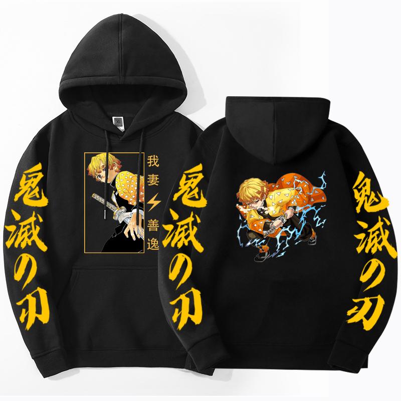 Men's Anime Demon Slayer Printed Hoodies Agatsuma Zenitsu Sweatshirt Harajuku Sleeve Loose Streetwear Casual Unisex Pullover