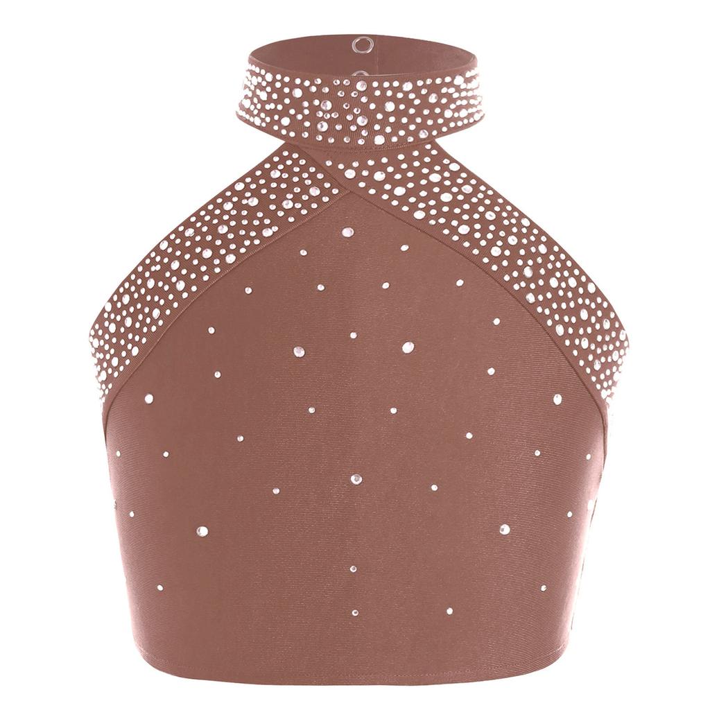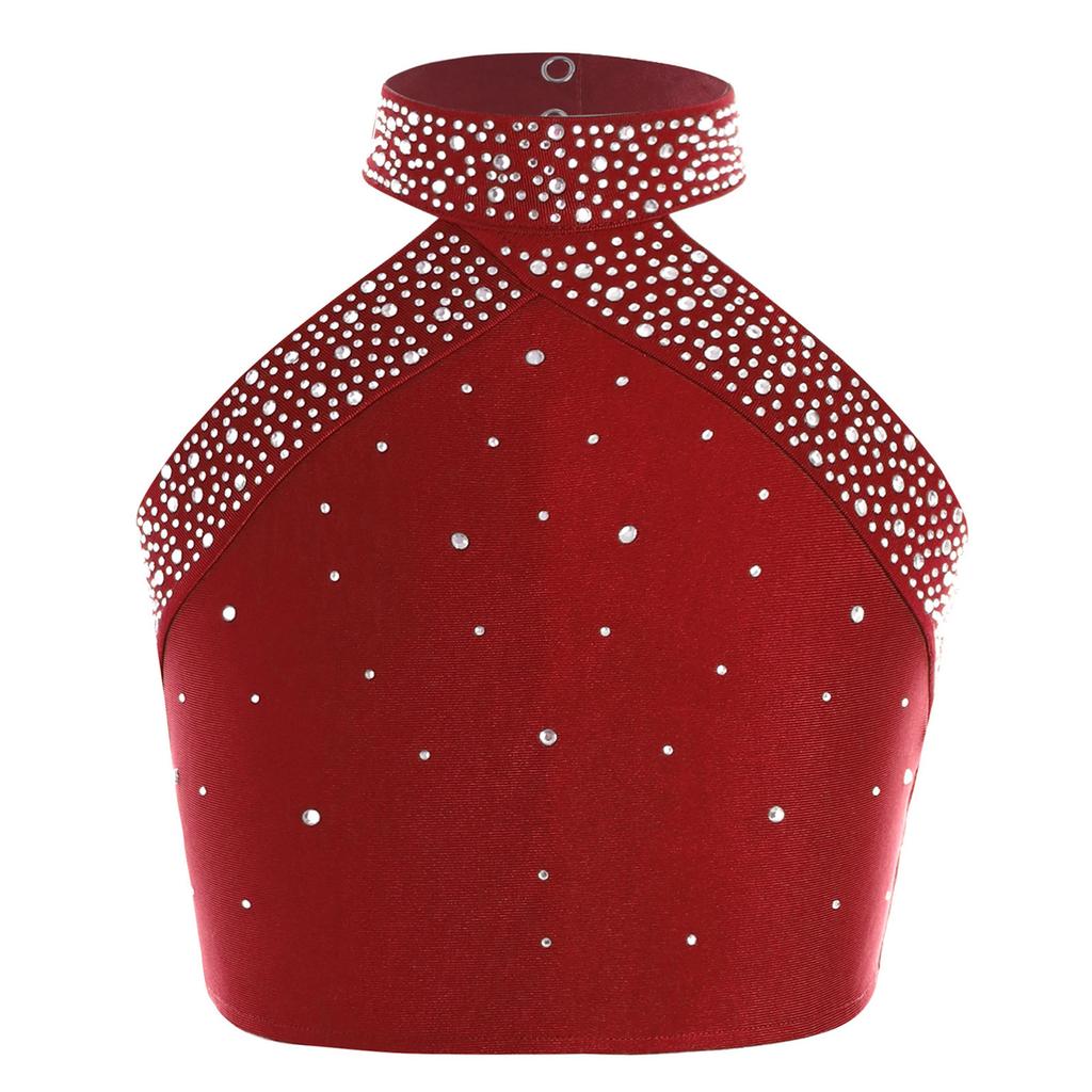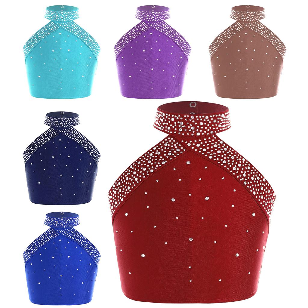 Женский топ для танцев с вырезом халтер, блестящий жилет со стразами, без рукавов, с открытой спиной, перекрещивающиеся лямки, сценический топ