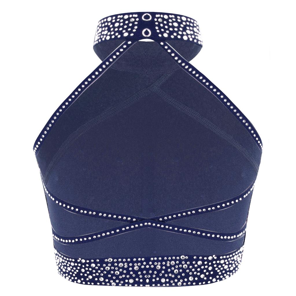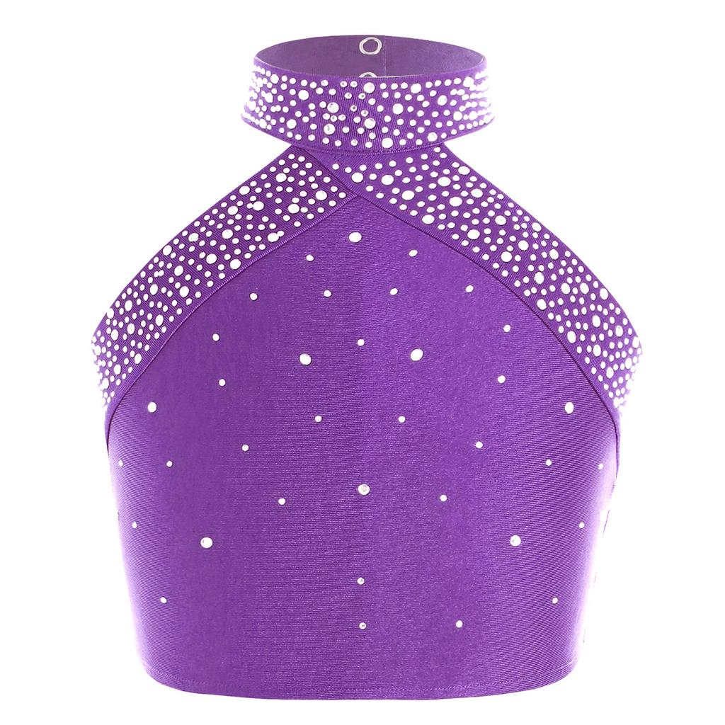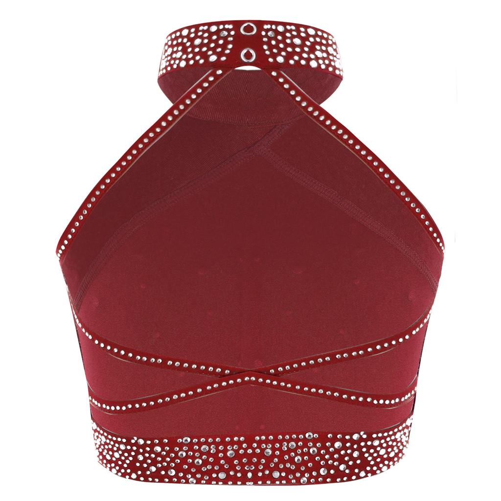 Женский топ для танцев с вырезом халтер, блестящий жилет со стразами, без рукавов, с открытой спиной, перекрещивающиеся лямки, сценический топ