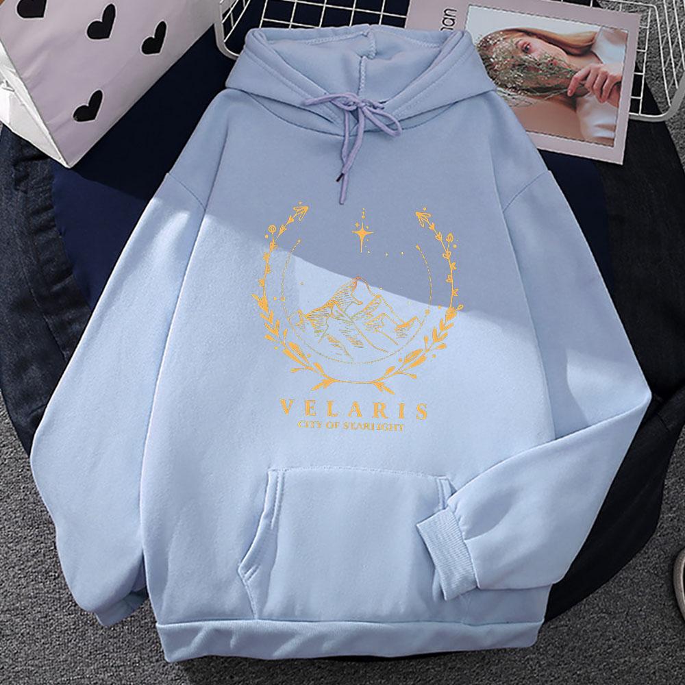 Свитшоты с принтом ACOTAR Velaris, графические толстовки с капюшоном, винтажная повседневная одежда, мужские/женские зимние свитера Sudaderas из флиса с круглым вырезом