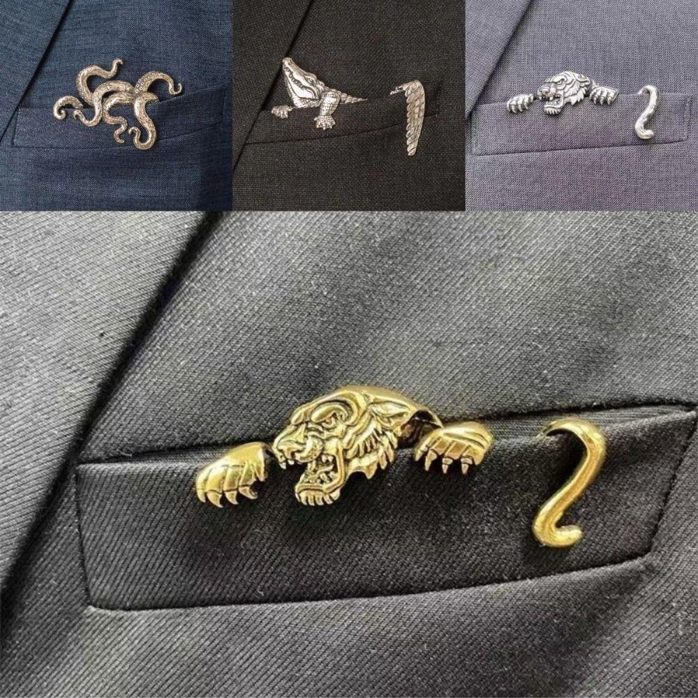 Брошь в виде животного с крокодиловым узором, прочная брошь для мужского костюма, аксессуар для рубашки