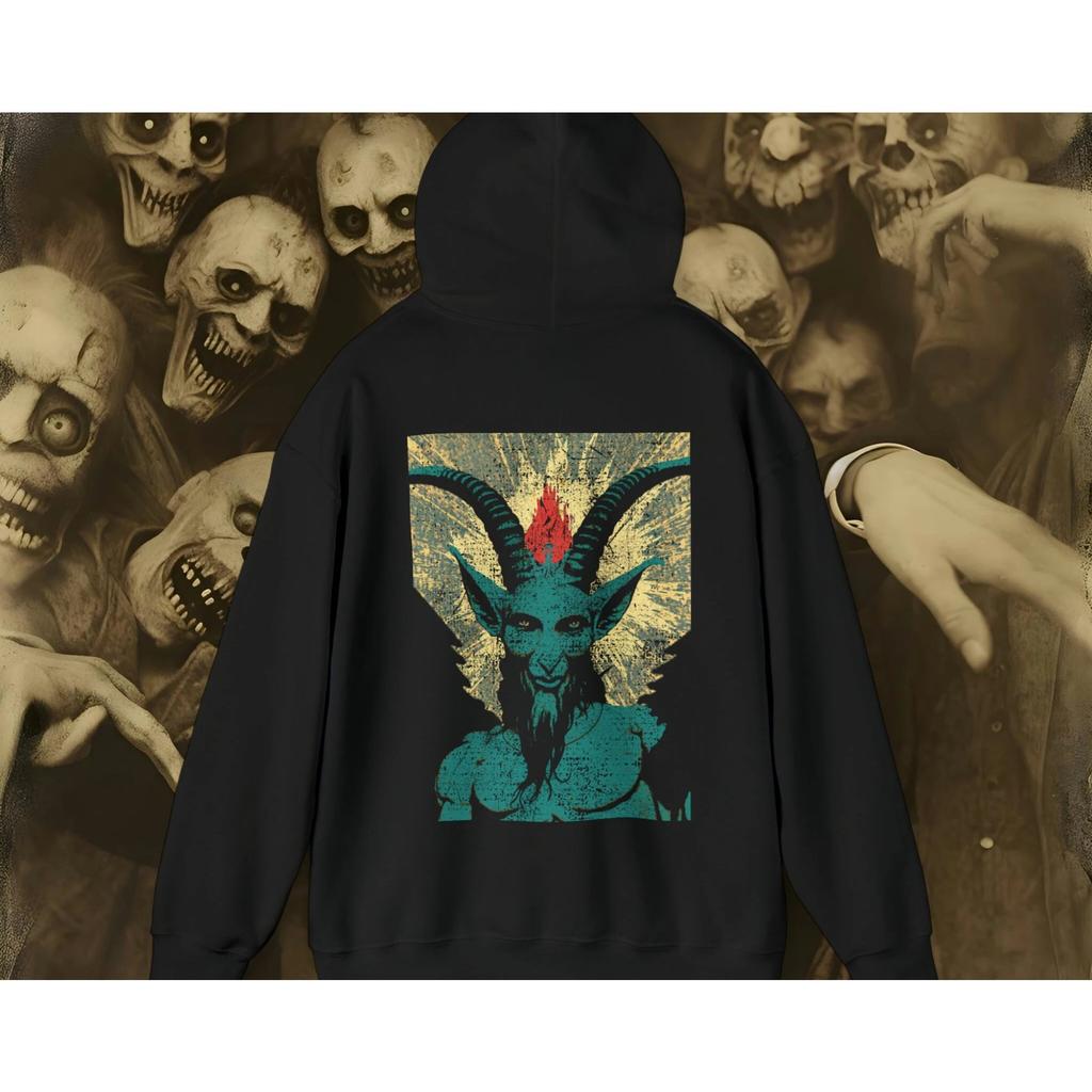 Мужское худи оверсайз готическое с принтом козла Бафомета, хоррор стритвир пуловер черная толстовка с капюшоном — купить товар онлайн с бесплатной доставкой по всему миру!