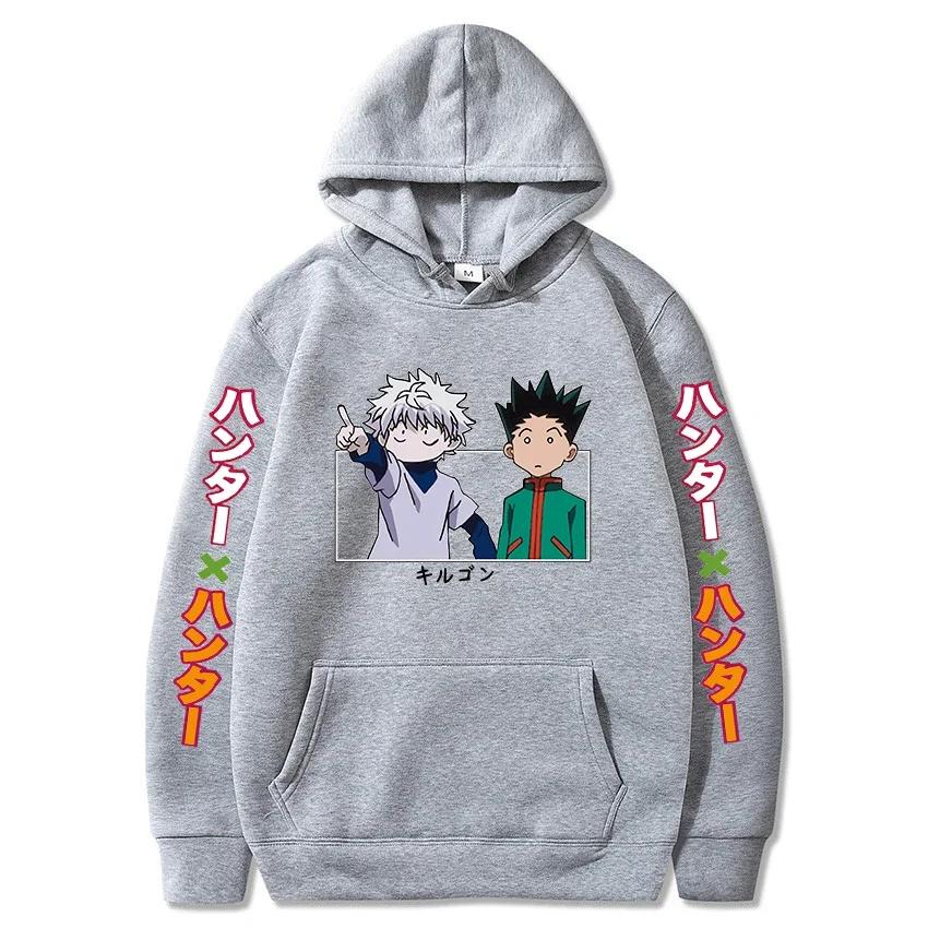 Hunter X Hunter Япония Аниме Мужчины Женщины Толстовки Harajuku Gon Killua Принт Плюс Размер Толстовка Унисекс Осень Зима Уличная одежда