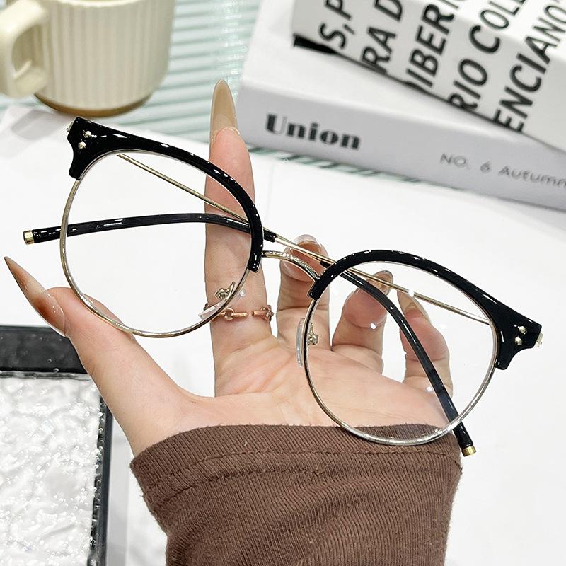 Стильные классические круглые оверсайз оправы с защитой от синего света, очки для пресбиопии, ретро металлические полуободковые очки для чтения HD