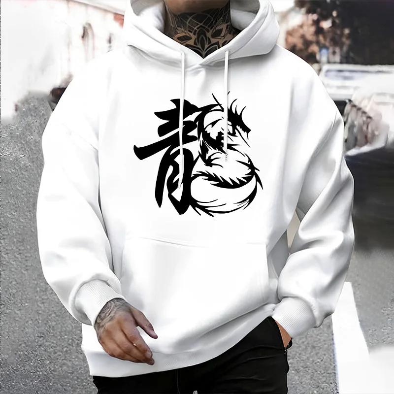 Базовые худи в уличном стиле для мужчин 2025 Городская мода Худи с капюшоном с китайским драконом Мужские модные повседневные худи Осень Зима — купить товар онлайн с бесплатной доставкой по всему миру!