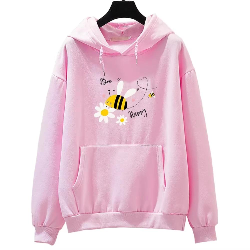 2025 Bee Happy Lovely Hooded Pullovers Women and Men Cute Graphic Hoodie Casual Autumn_winter Loose Sweatshirt Cartoon Comic Clo