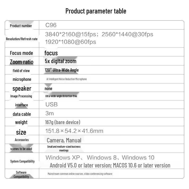Aoni C96 4K HD Wide-Angle Conference Webcam