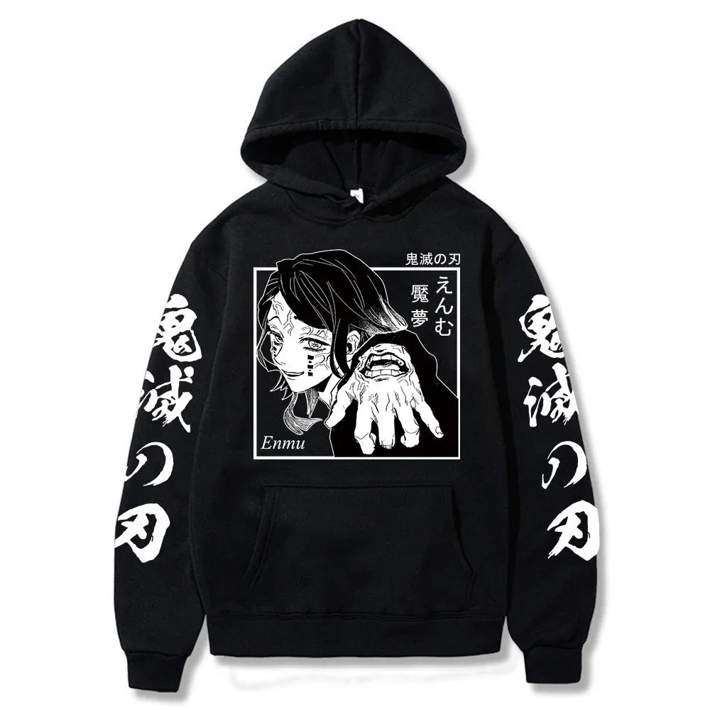 Харадзюку Аниме Мудзан Кибуцудзи Энму Толстовки Пуловер Мужская Мода Мультяшный Kimetsu No Yaiba Графический Повседневный Оверсайз Свитшот