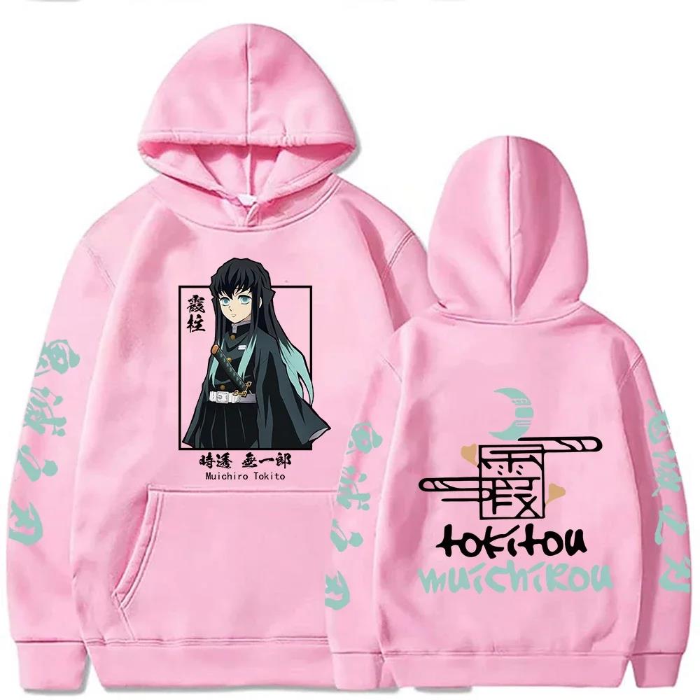 Новые забавные женские толстовки с капюшоном в стиле японского аниме Demon Slayer Plus Size, толстовка Harajuku Muichiro Tokito с принтом и капюшоном для девочек