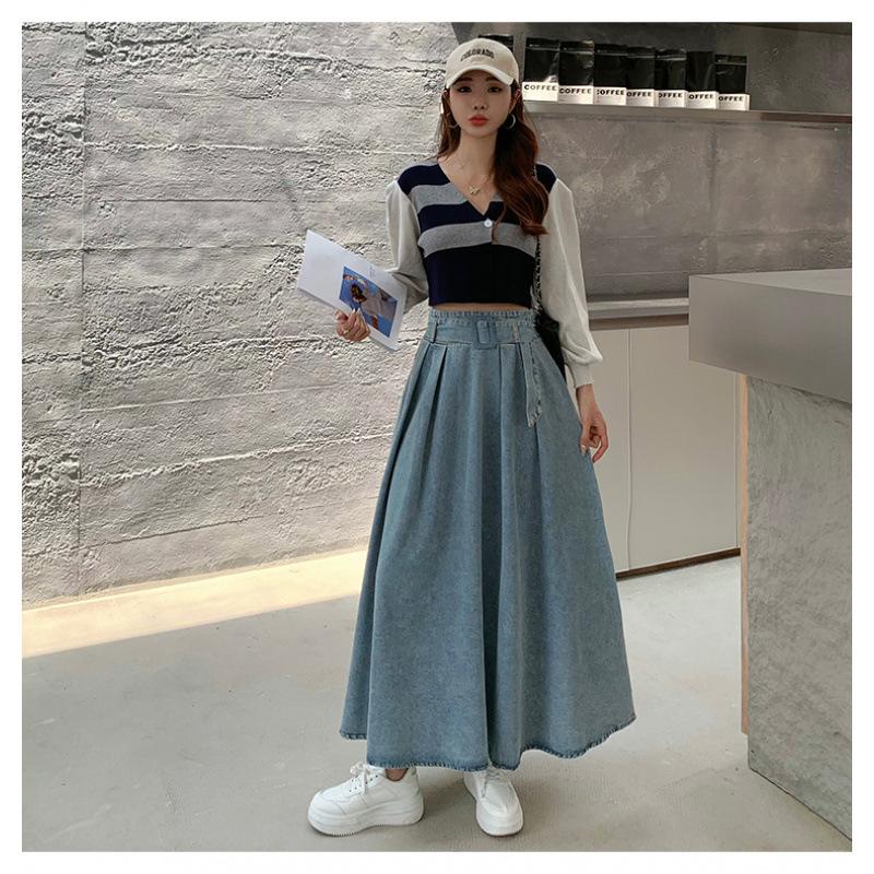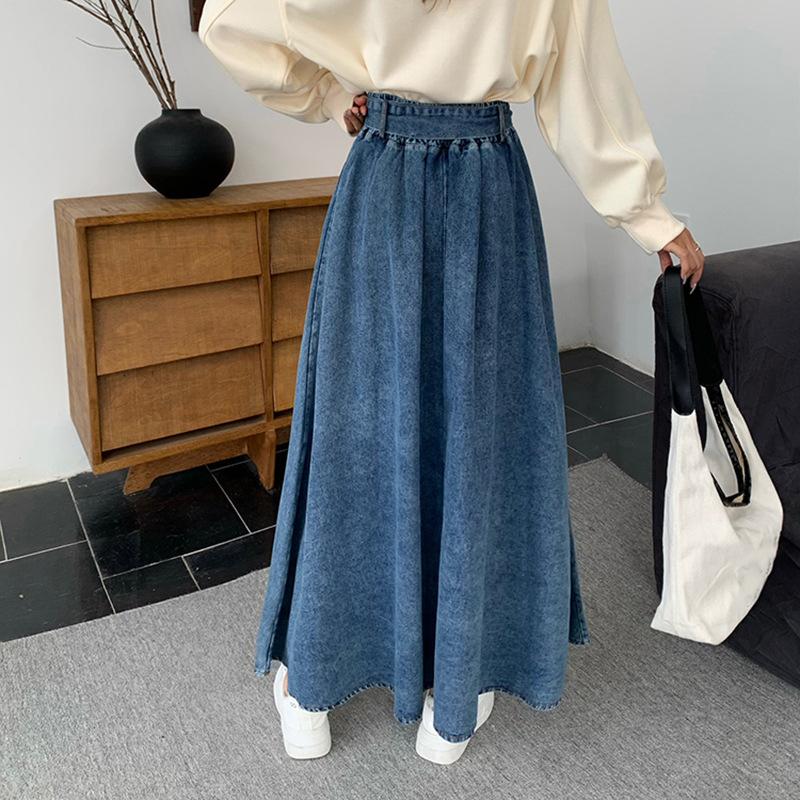 Женская синяя джинсовая плиссированная юбка А-силуэта Y2k с поясами, длинные джинсовые юбки, Харадзюку, винтажная корейская джинсовая юбка с высокой талией, одежда